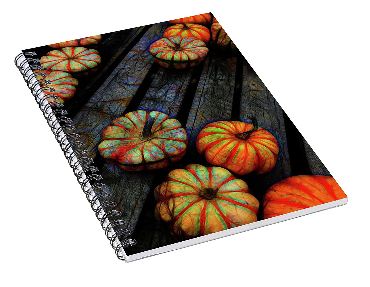 Our spiral notebooks are 6" x 8" in size and include 120 pages which are lined on both sides. The artwork is printed on the front cover which is made of thick paper stock, and the back cover is medium gray in color. The inside of the back cover includes a pocket for storing extra paper and pens.