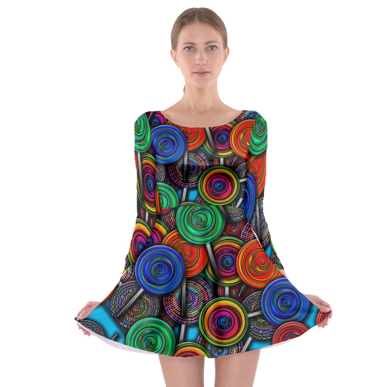 Colorful lolipops Long Sleeve Skater Dress