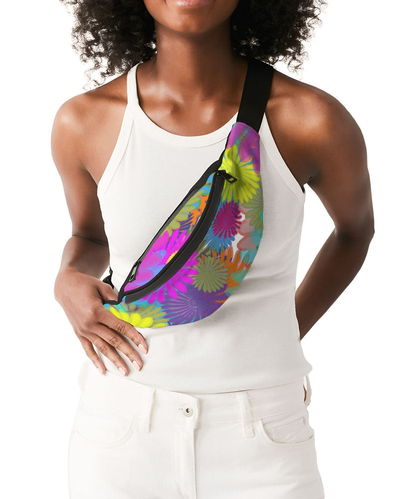 About The ArtDaisy Festival Daisies in a colorful collage of retro shapes. Product DetailsDesigned to keep your essentials in order, our Crossbody Sling Bag can be worn over the shoulder or around the waist for easy access. With two zip compartments, an adjustable belt and a buckle closure, flaunt your custom design anywhere you go.