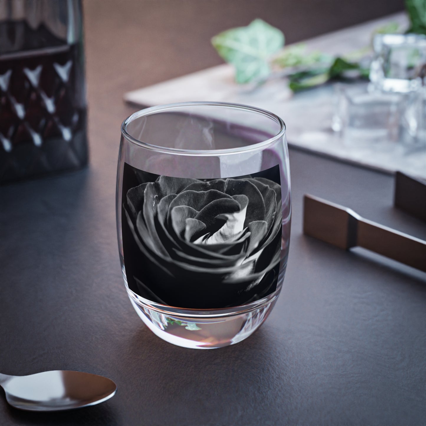 Dark Black and White Rose Whiskey Glass