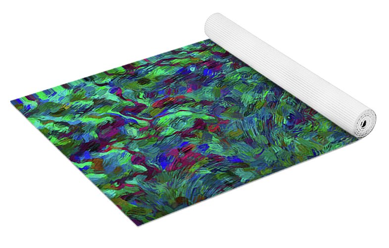 Our premium yoga mats are 24" wide x 72" tall x 0.25" thick and made from natural rubber with a blended microfiber top surface.   The top of the mat has the image printed on it, and the back is solid black with textured dimples for better floor grip.