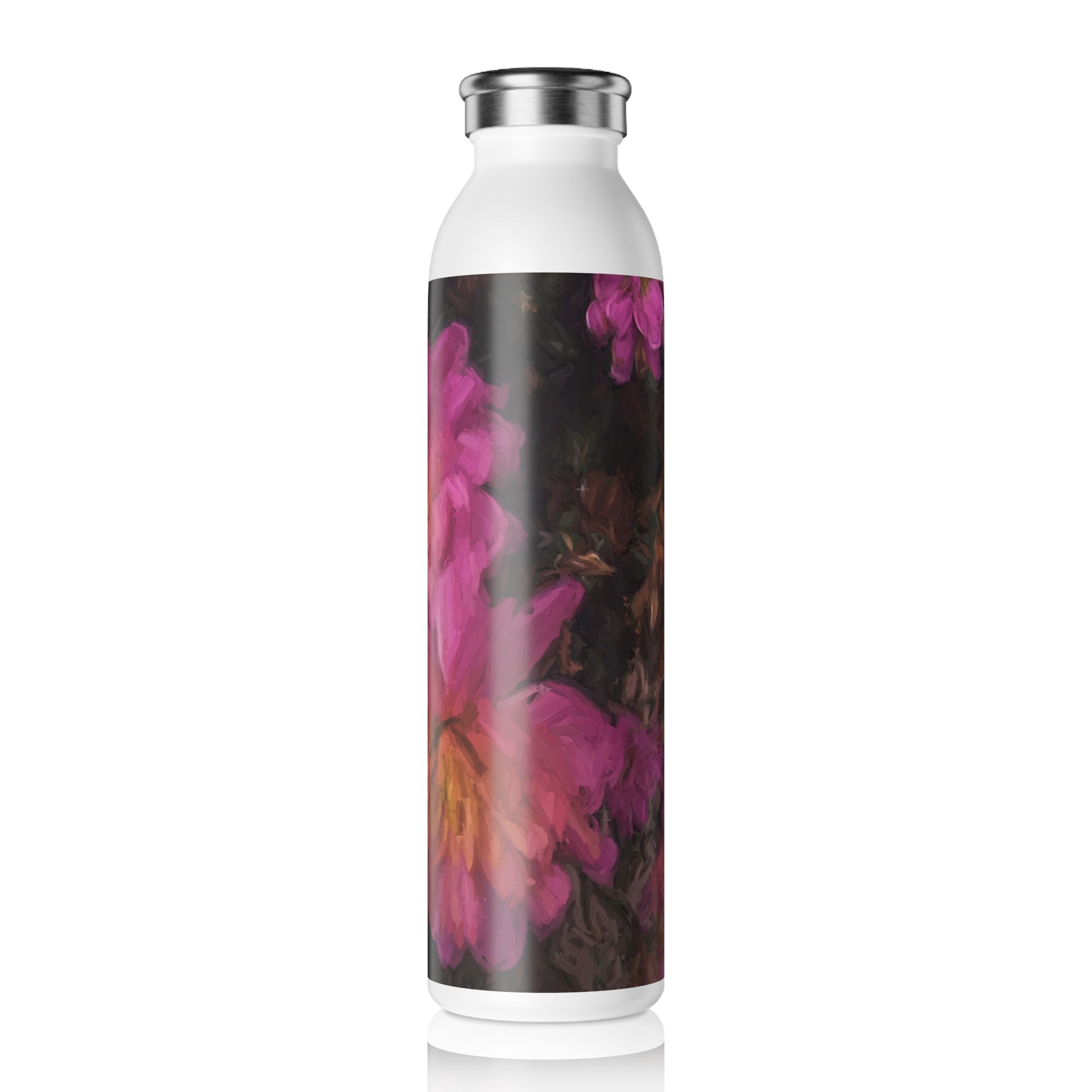 Floral Water Bottle — Slim Insulated Pink Mums Design