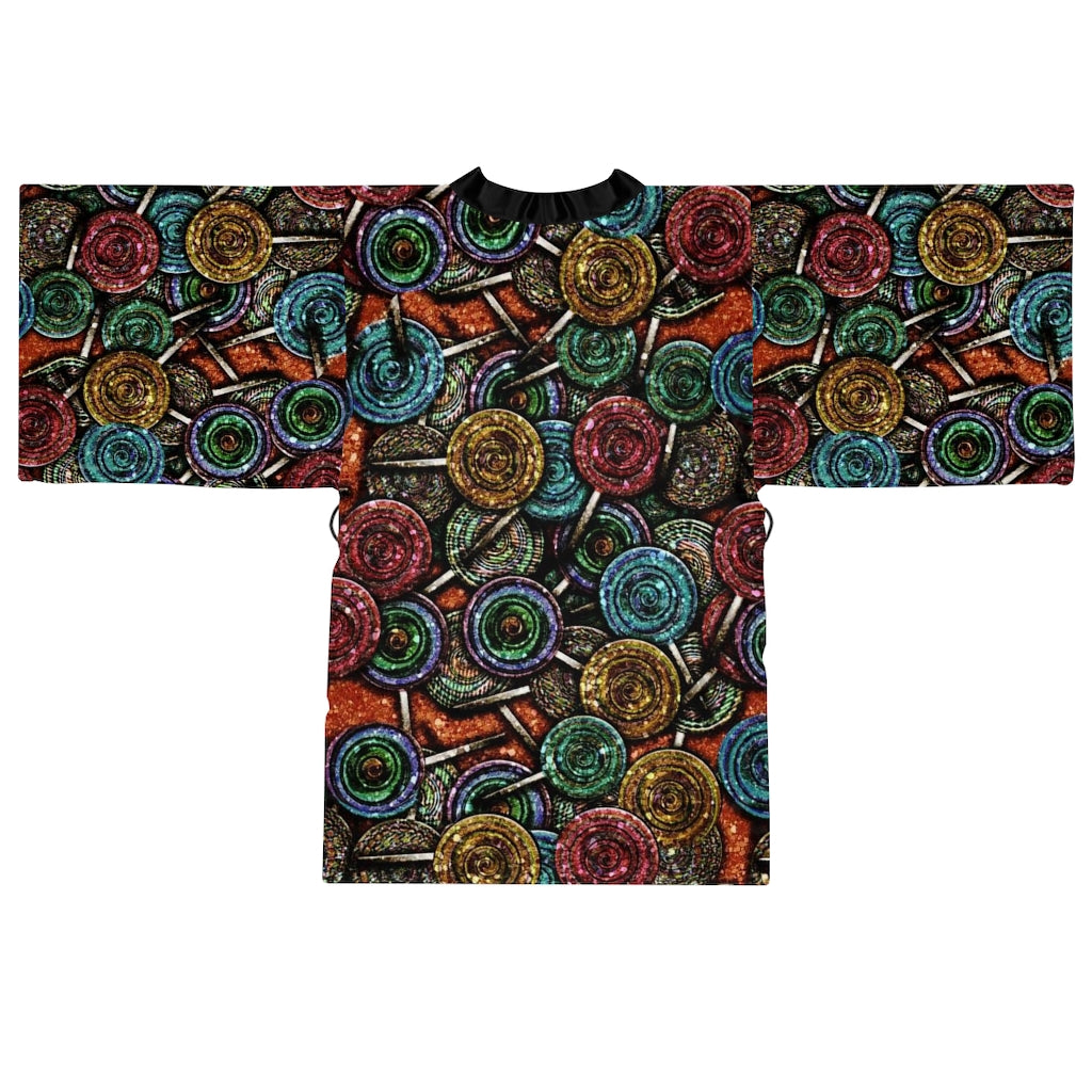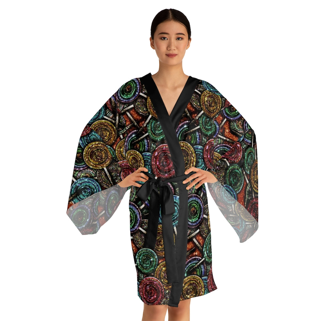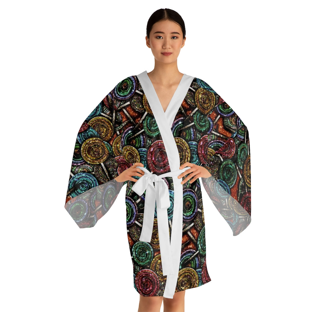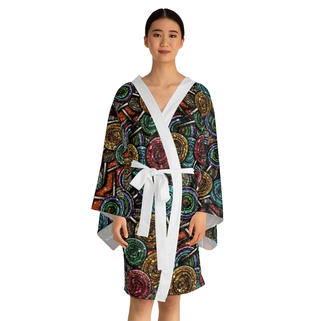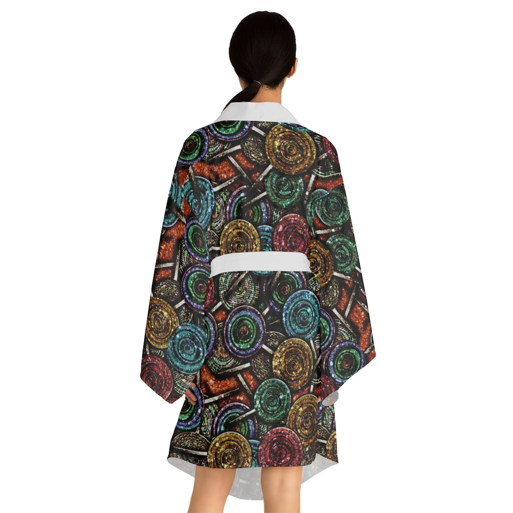 Glitter Lollipop Pattern Long Sleeve Kimono Robe