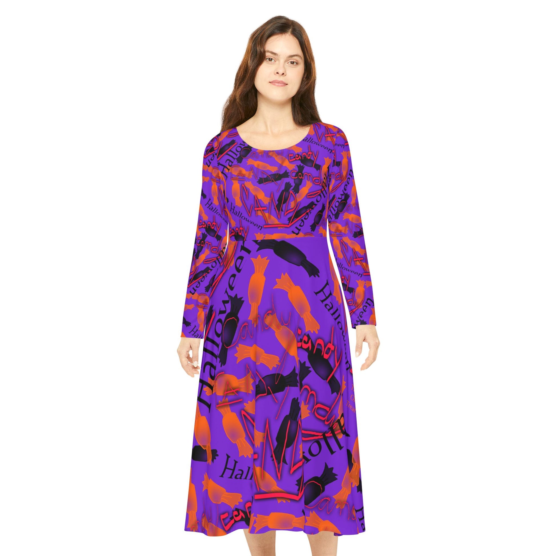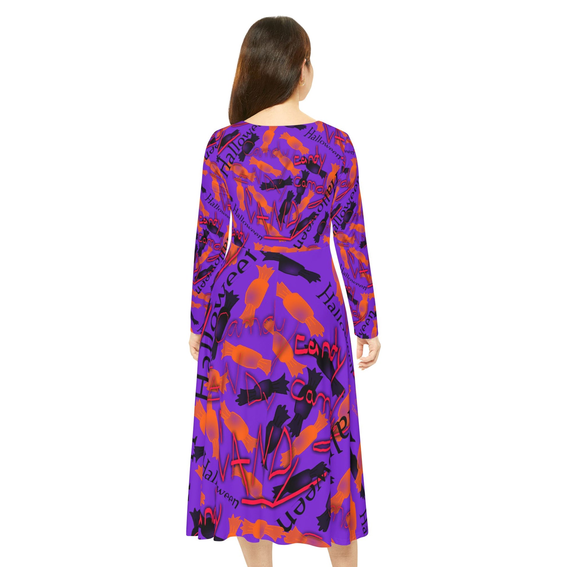 Halloween Candy Dance Dress, Women's Long Sleeve Dress, Spooky Party Wear, Candy-Themed Dress, Fall Fashion, Halloween Costume