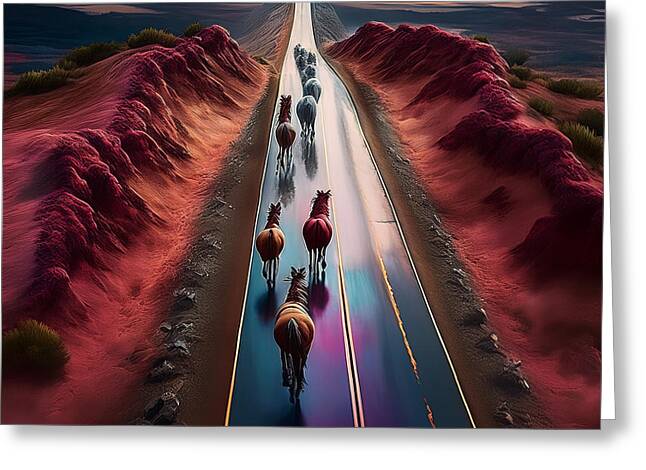 Horses In The Rain - Greeting Card