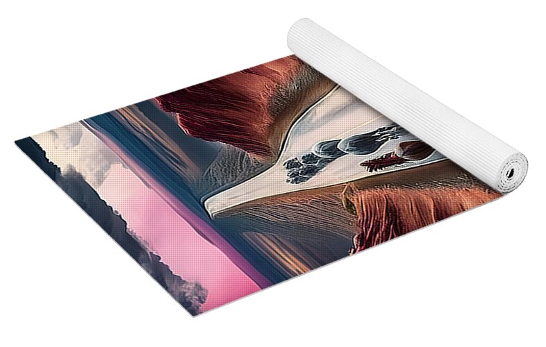 Our premium yoga mats are 24" wide x 72" tall x 0.25" thick and made from natural rubber with a blended microfiber top surface. The top of the mat has the image printed on it, and the back is solid black with textured dimples for better floor grip.