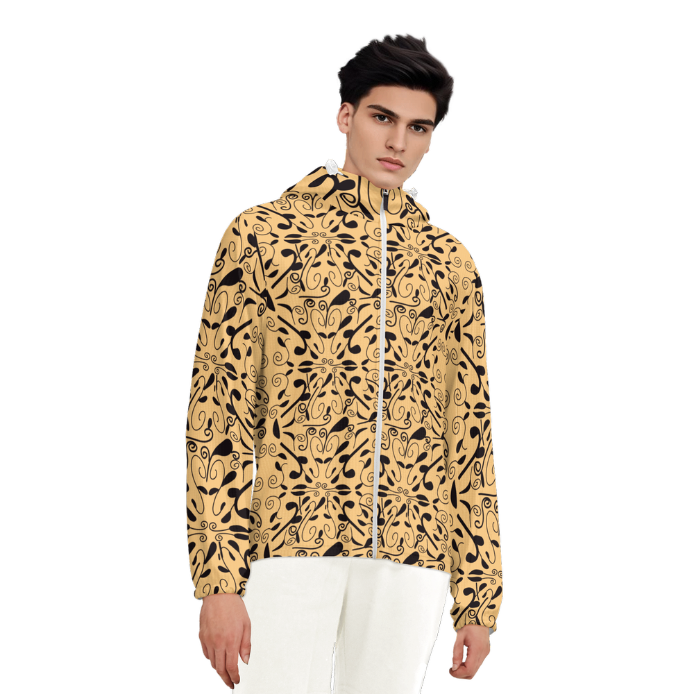 Leaf and Vine on Light Orange Unisex Lightweight Hooded Windbreaker- Water Resistant