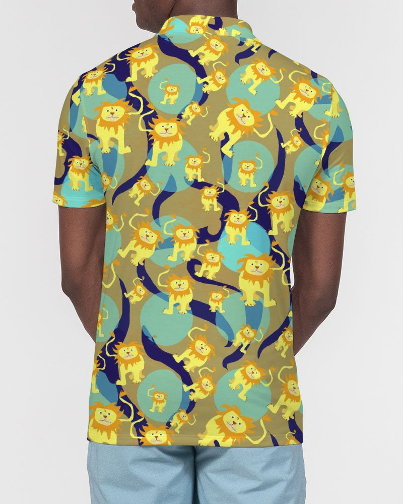 Lion Pattern Men's Slim Fit Short Sleeve Polo