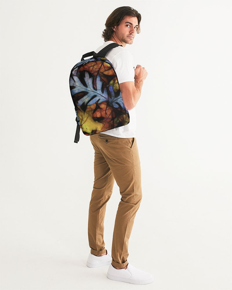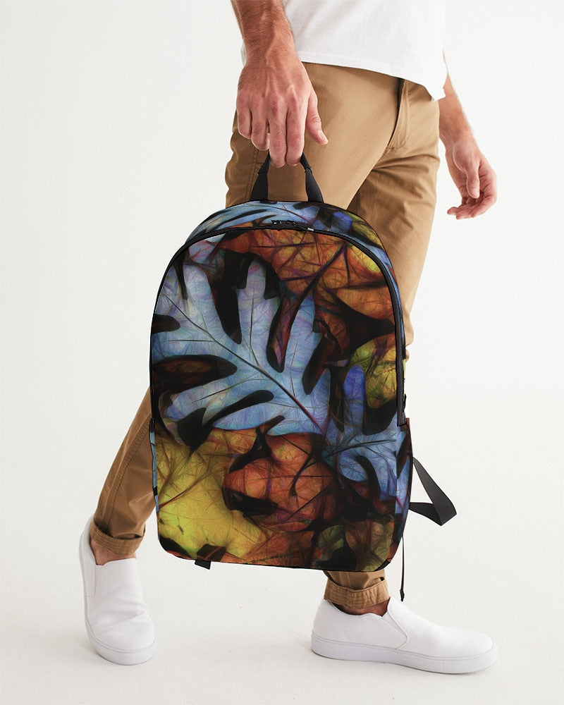 About The ArtMid October Leaves Leaves in abstracted photo art. Product DetailsOur Large Backpack can fit just about anything you need! With two zip pockets, a small slip pocket, a laptop sleeve, and two exterior side pockets there's plenty of space for your items. Use the interior small slip pocket to organize your smaller items, with plenty of space for a 16" laptop and more.