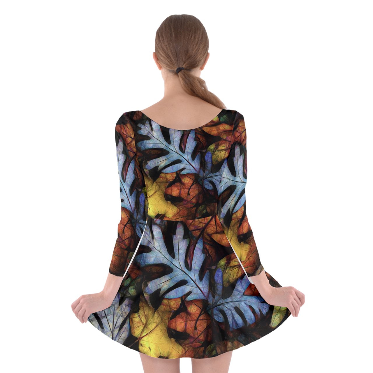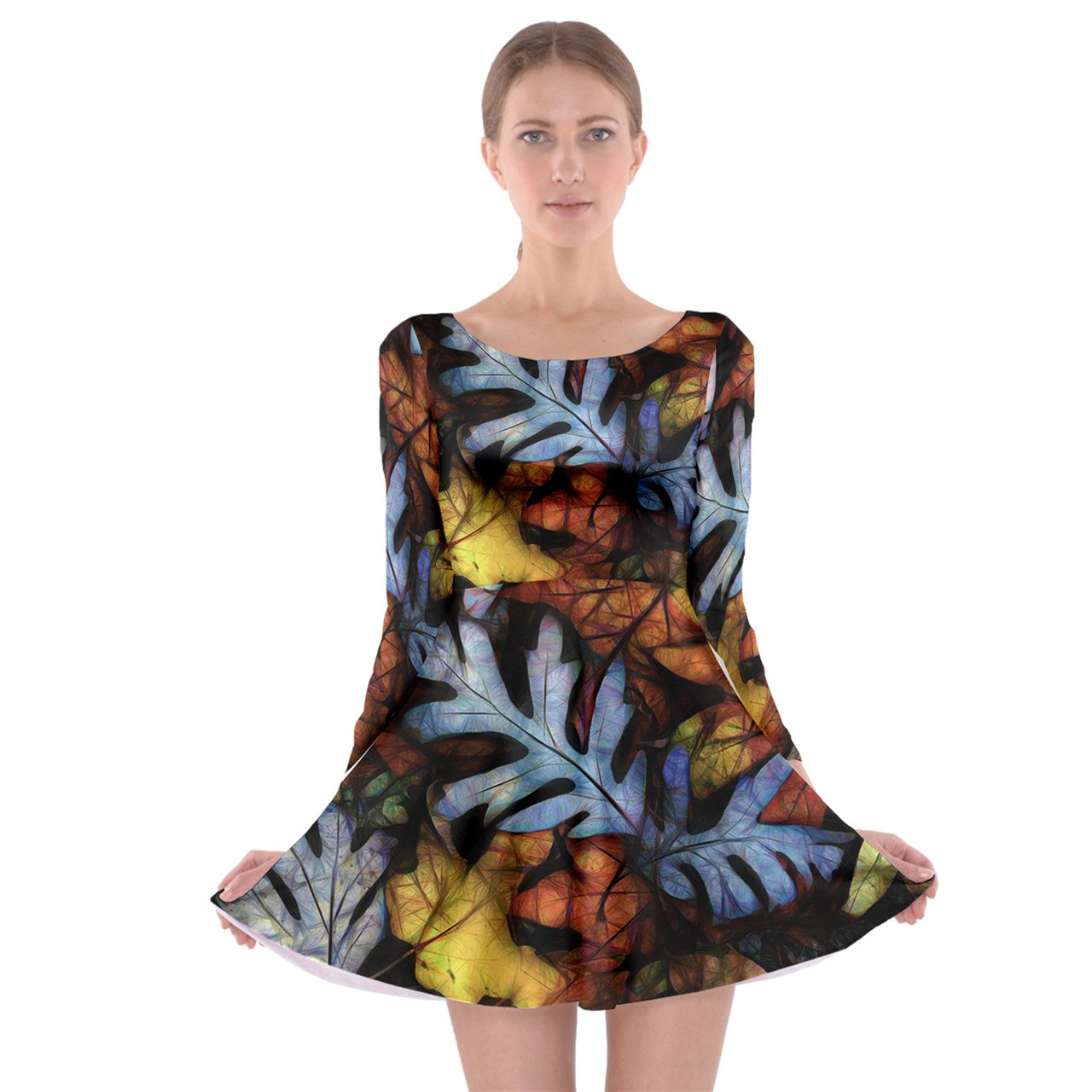 Mid October Leaves Long Sleeve Skater Dress