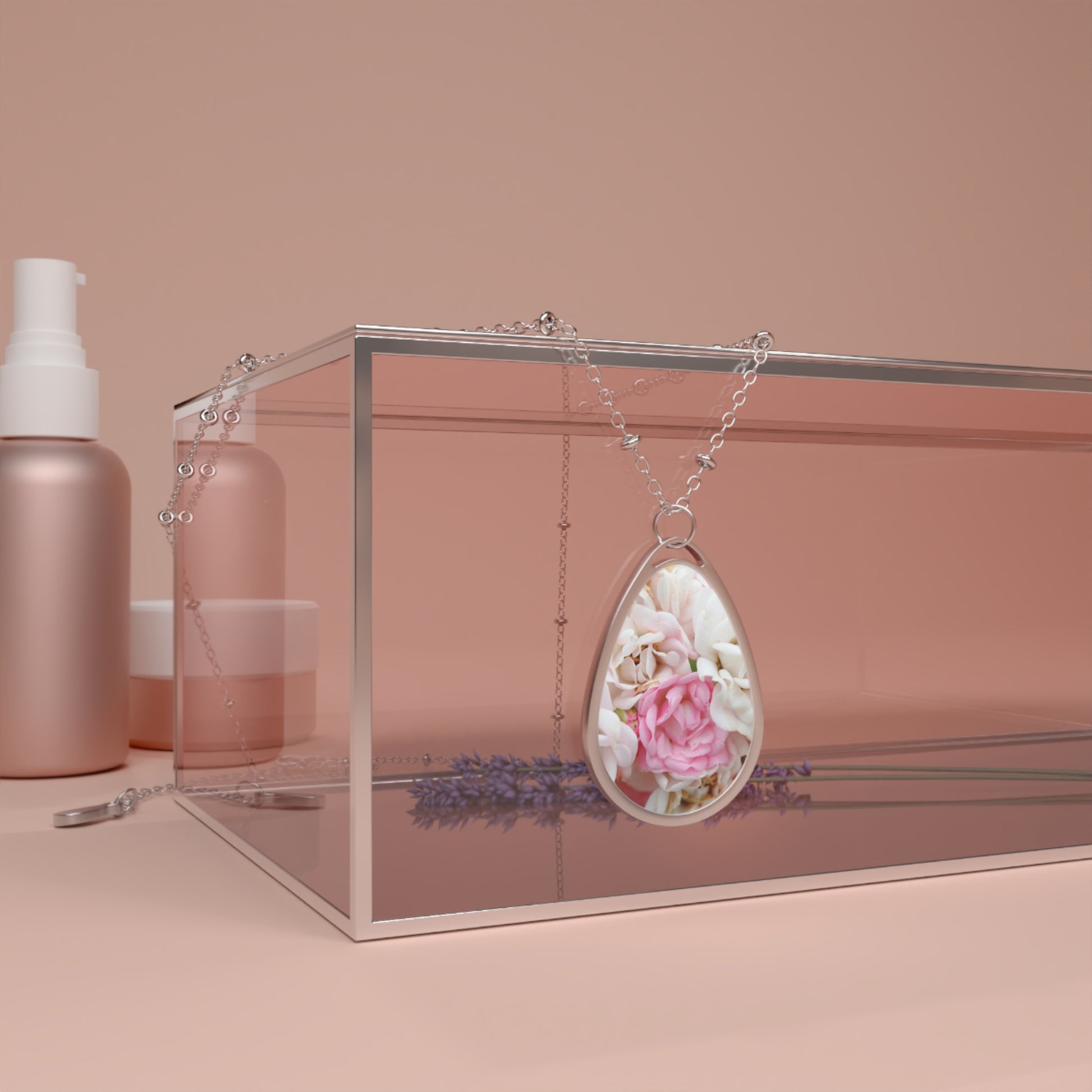 Natures Wedding Bouquet Oval Necklace, Elegant Jewelry, Dainty Pendant, Gift for Her, Birthday, Mother's Day, Anniversary, Boho Chic Accessory