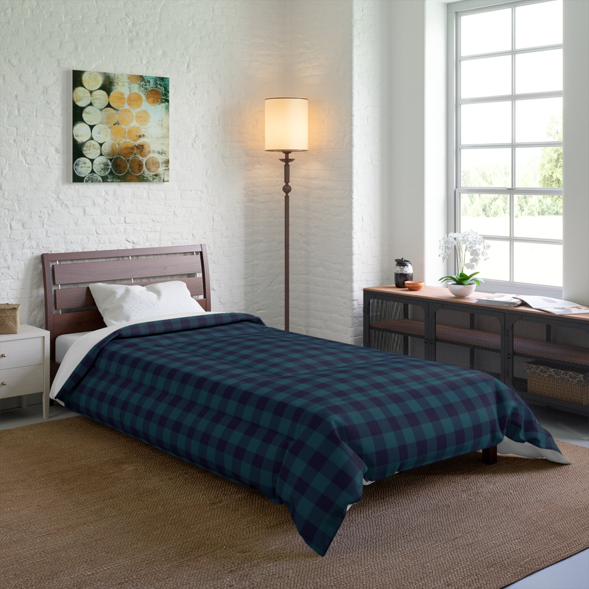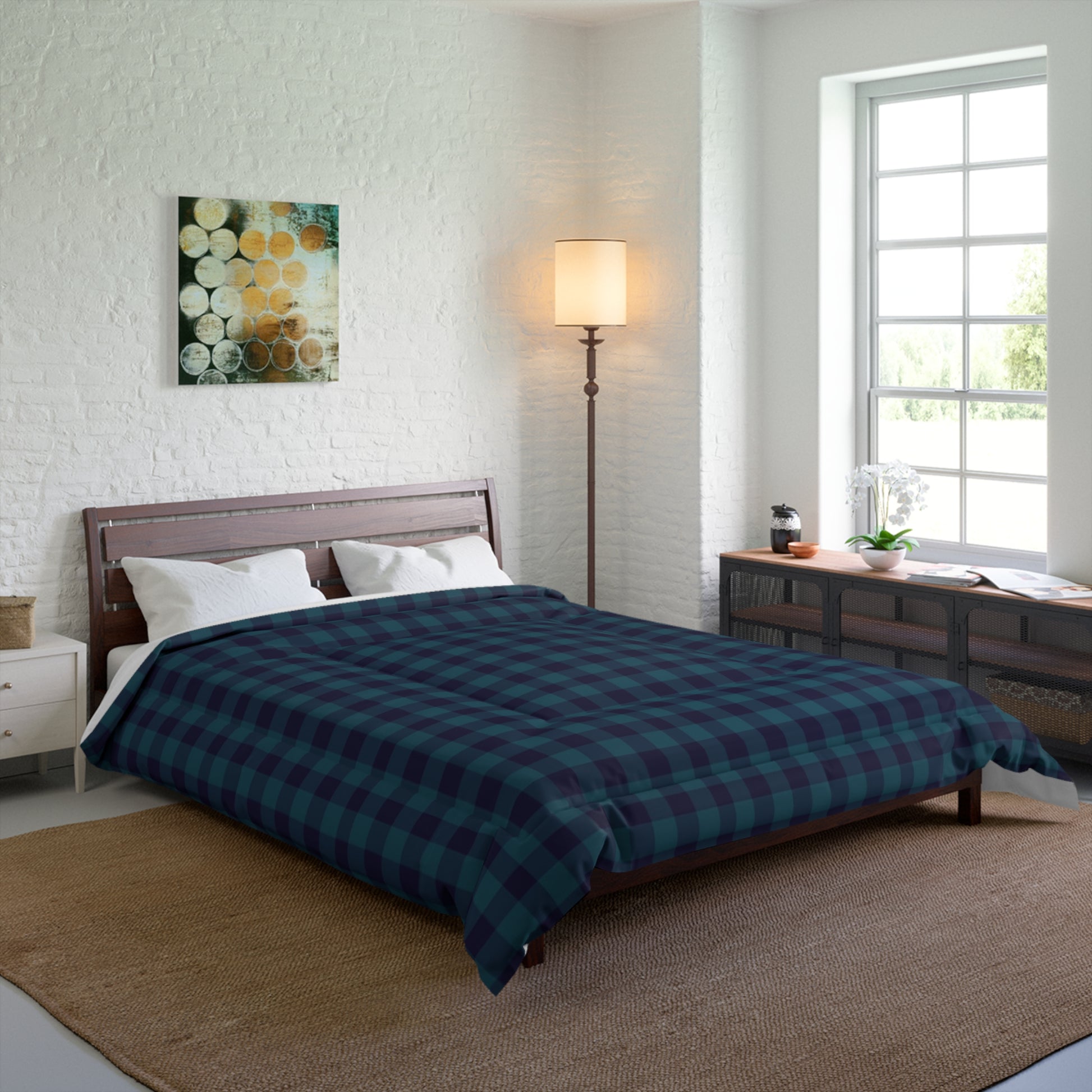 Navy Teal Buffalo Plaid Comforter – Cozy Rustic Bedding for Cabin & Bedroom