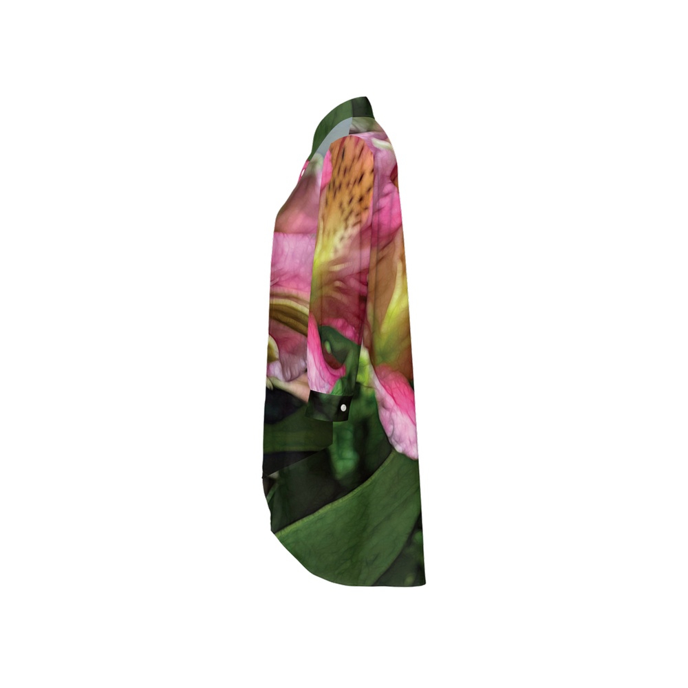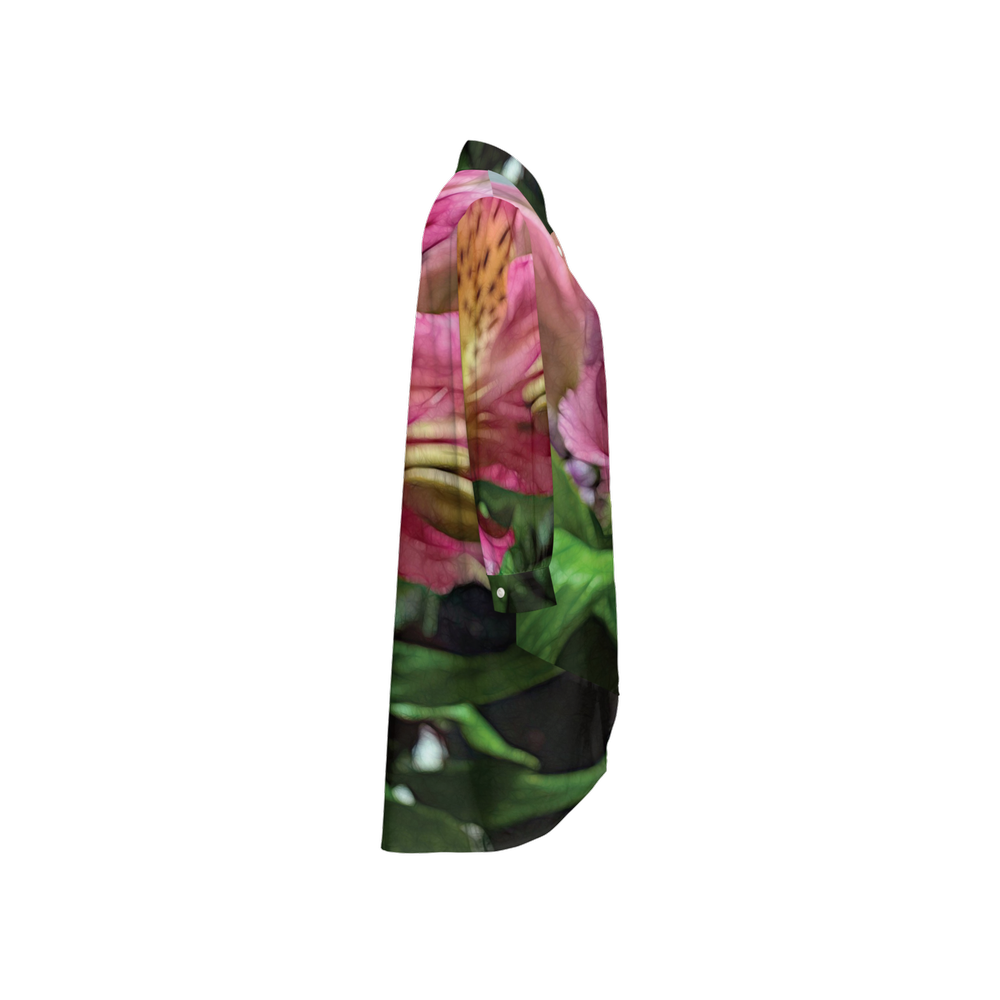 October Flowers 3 Women's High-Low Long-Sleeve Hem Shirt Silky-like Elegance