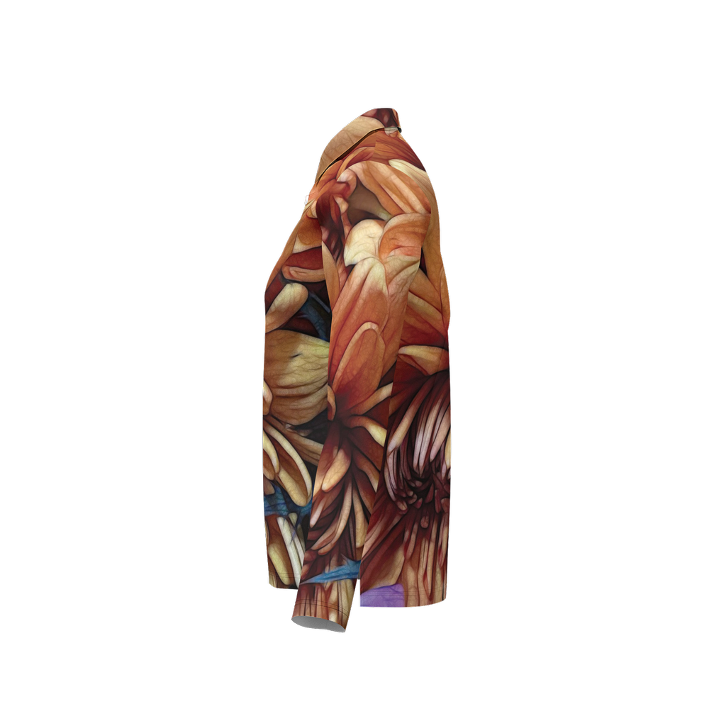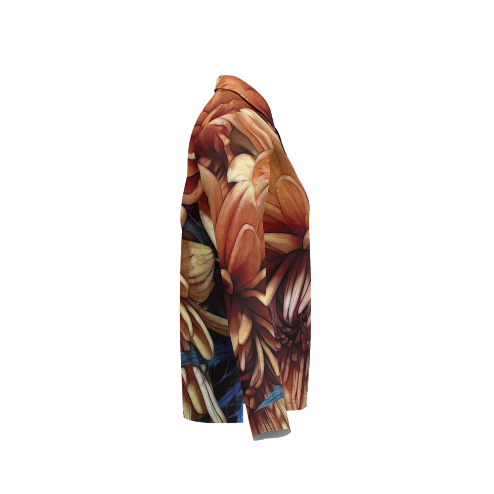 October Flowers 8 Women's Classic Fit Long-Sleeve Polo Shirt-Cotton Feel 200g