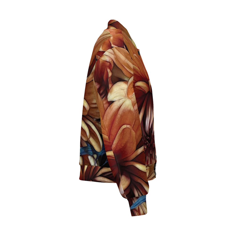 October Flowers 8 Women's Double Layered Bomber Sports Jacket-Techno Scuba Knit