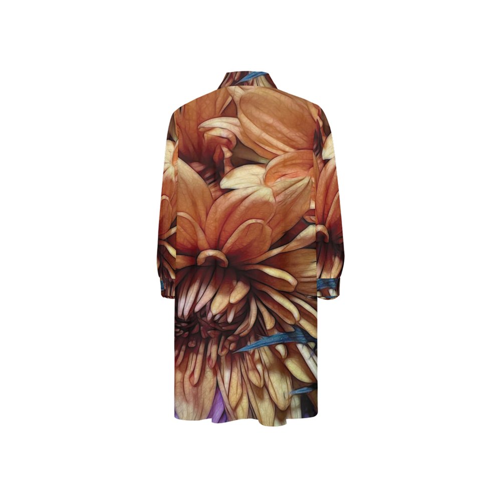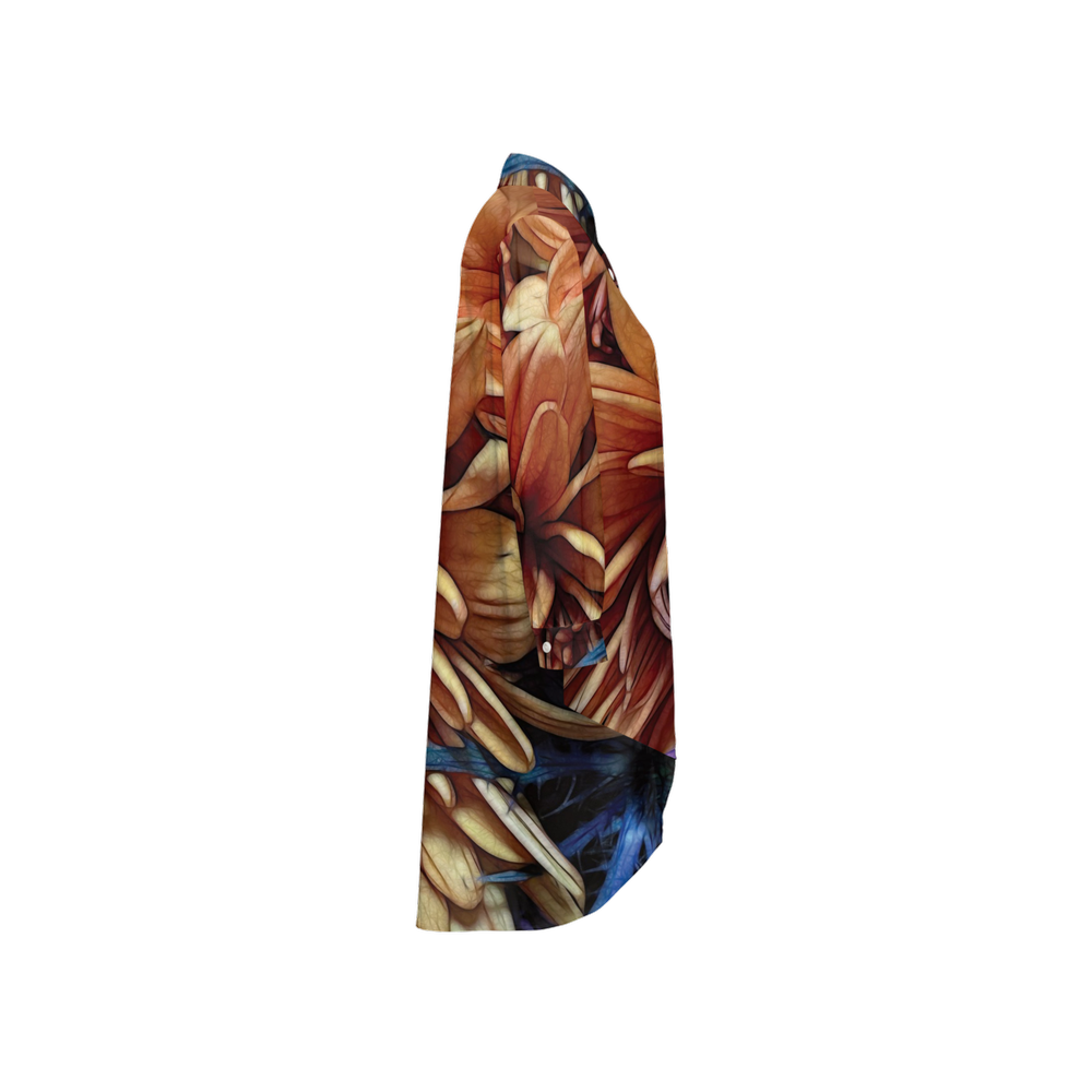 October Flowers 8 Women's High-Low Long-Sleeve Hem Shirt Silky-like Elegance
