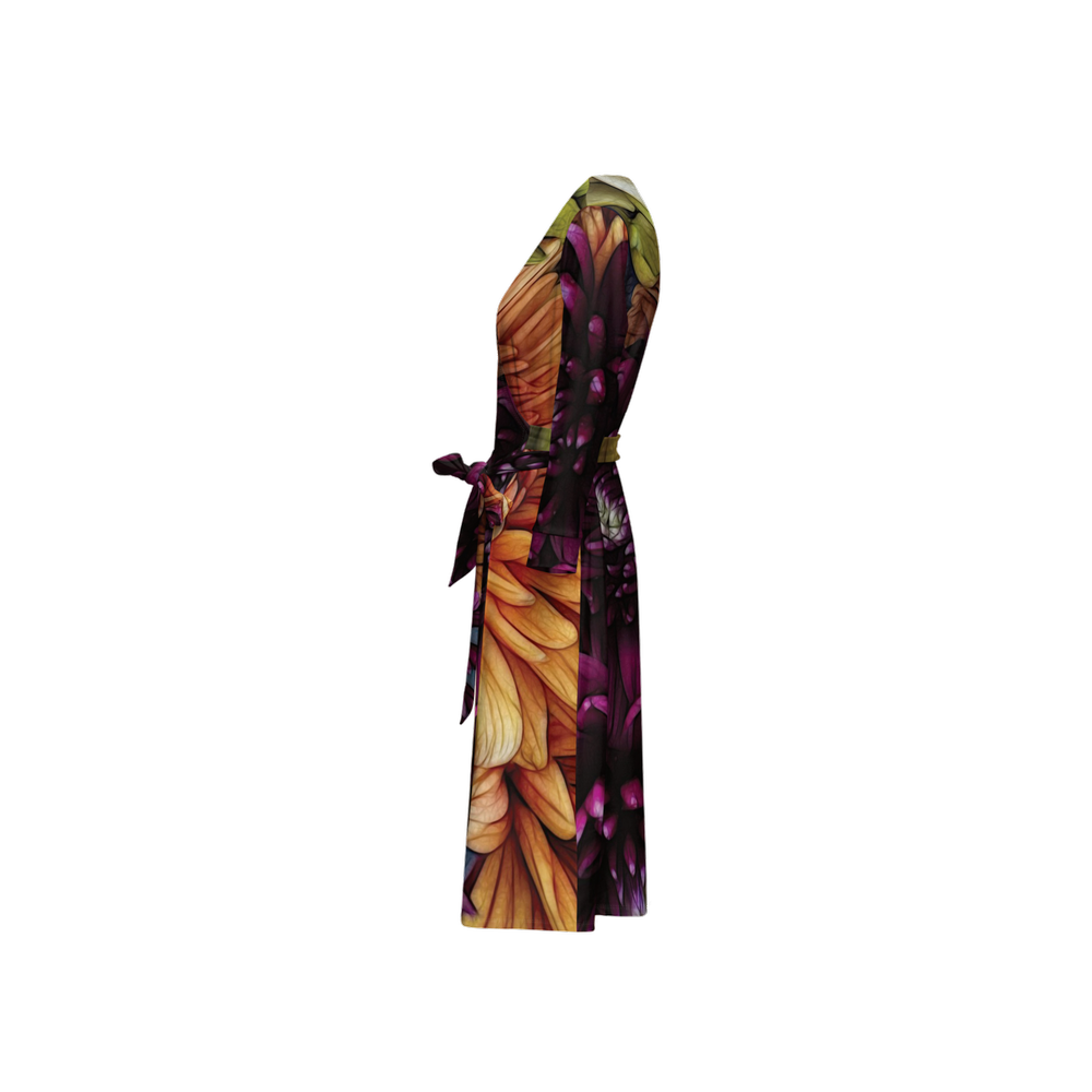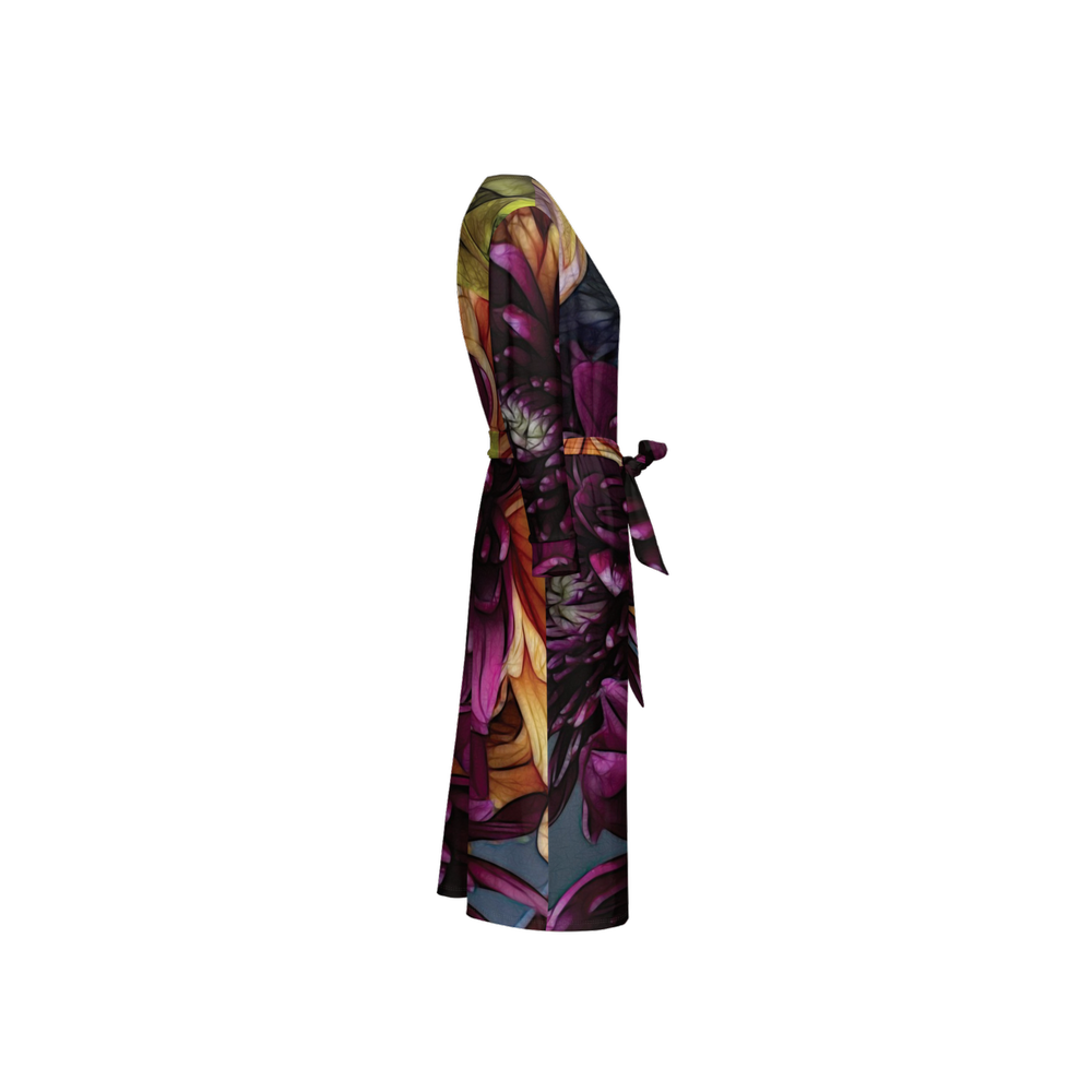 October Flowers 9 Women's ¾ Sleeve Wrap Dress-Heavy Knit