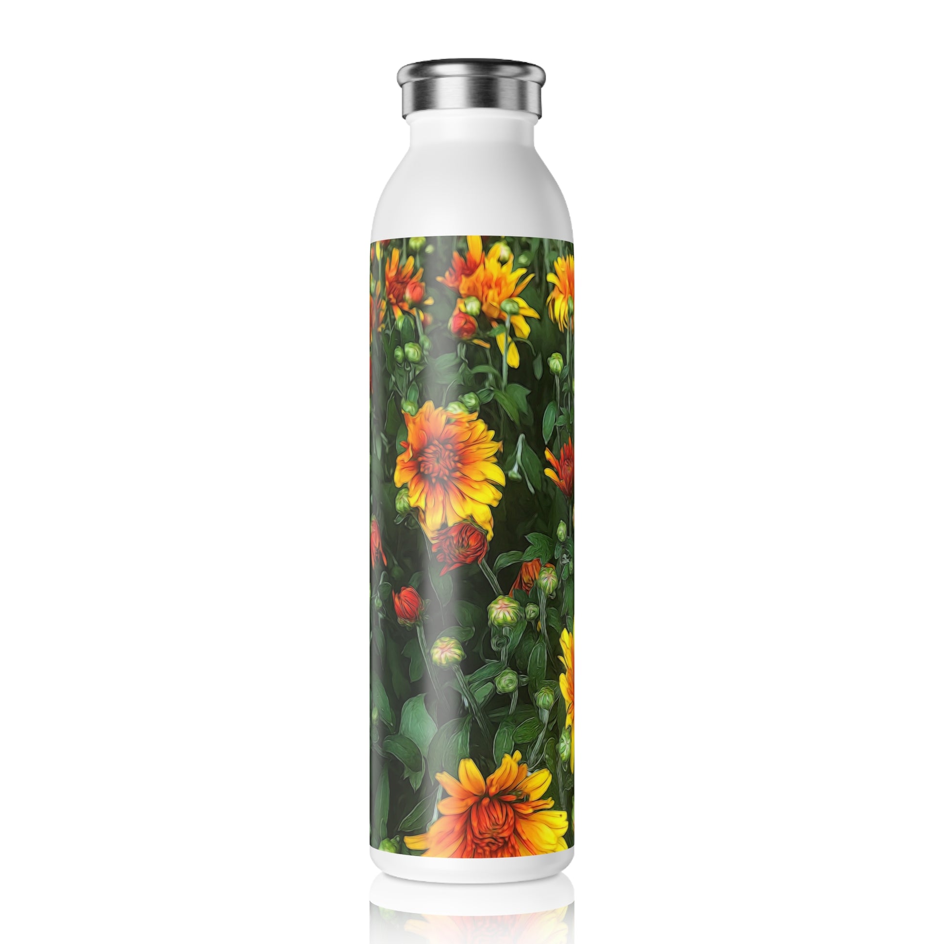 Orange Fall Mums Opening Slim Water Bottle - Eco-Friendly Hydration, Gift for Nature Lovers, Travel Bottle, Summer Accessories, Fitness Hydration