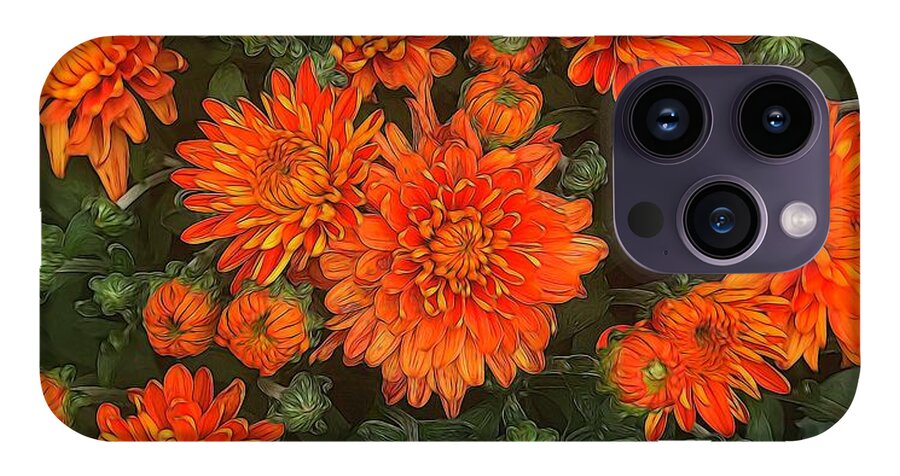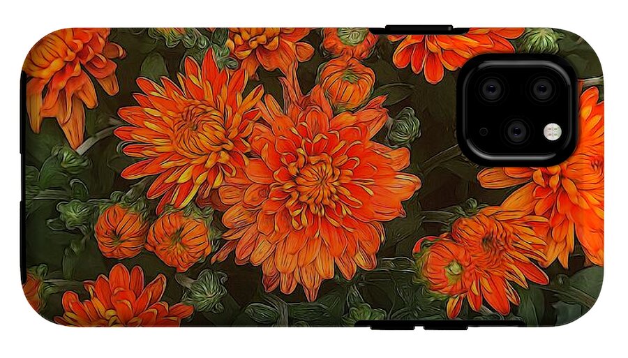 Orange Fall Mums iPhone case by Cindy Boyd. Protect your iPhone with an impact-resistant, slim-profile, hard-shell case. The image is printed directly onto the case and wrapped around the edges for a beautiful presentation. Simply snap the case onto your iPhone for instant protection and direct access to all of the phone's features!