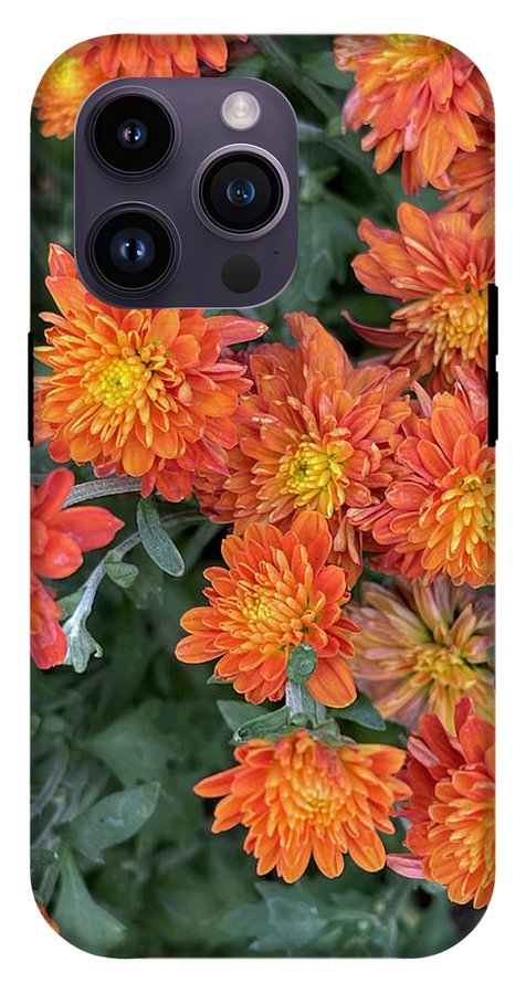Orange Mums walk iPhone case by Cindy Boyd. Protect your iPhone with an impact-resistant, slim-profile, hard-shell case. The image is printed directly onto the case and wrapped around the edges for a beautiful presentation. Simply snap the case onto your iPhone for instant protection and direct access to all of the phone's features!