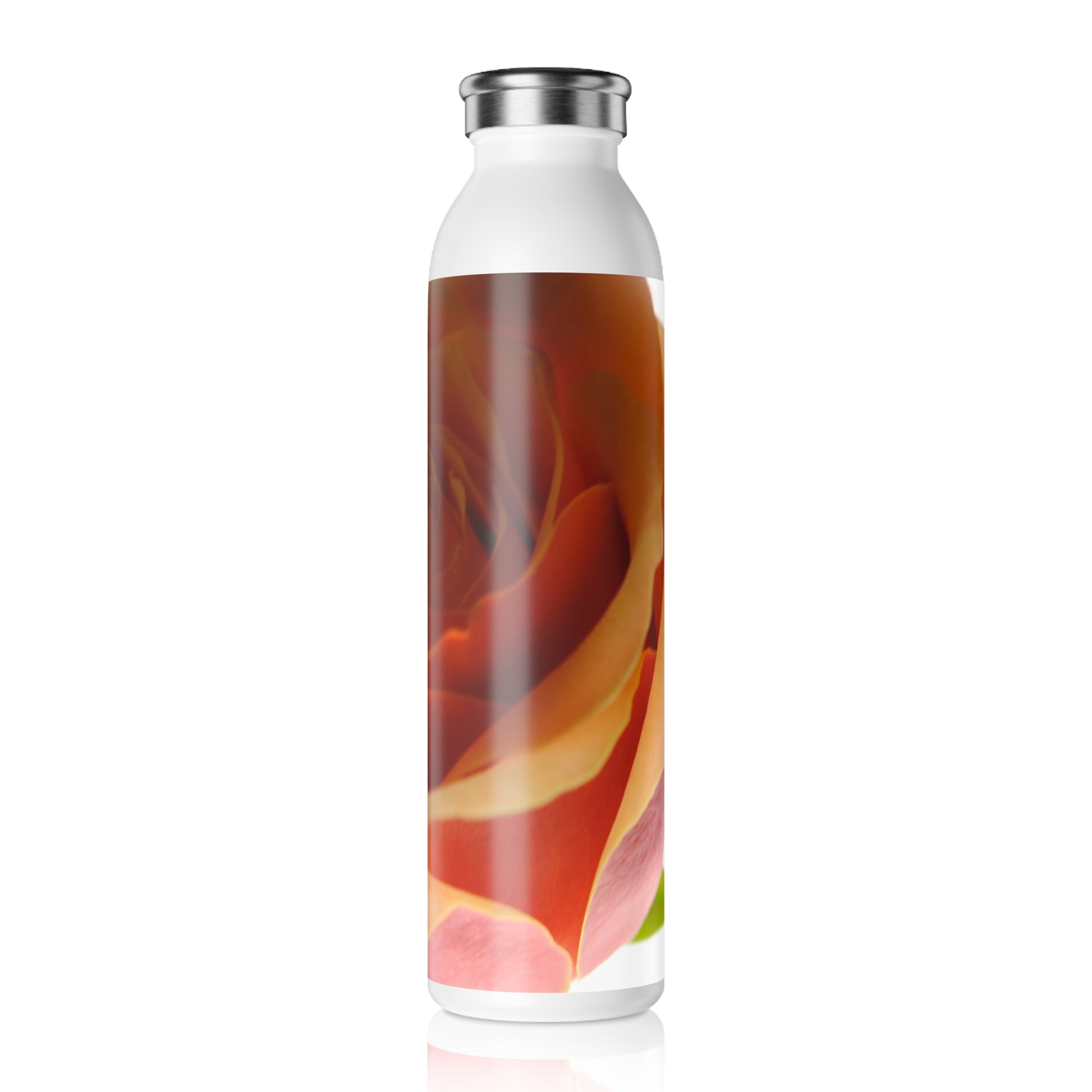 Pastel Pink and Orange Rose Floral Slim Water Bottle | Eco-Friendly Hydration, Gym, Yoga, Gift for Her, Summer Vibes, Floral Design