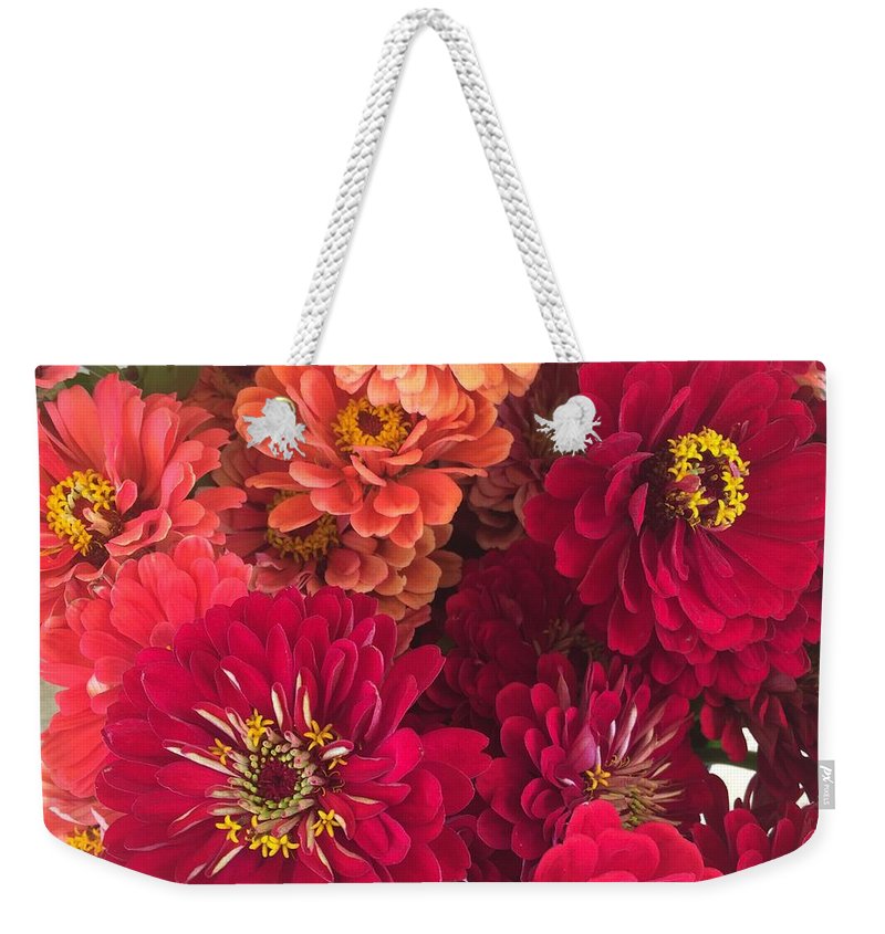 Our weekender tote bags are chic and perfect for a day out on the town, a staycation, or a weekend getaway. The tote is crafted with soft, spun poly-poplin fabric and features double-stitched seams for added durability. The 1" thick cotton handles are perfect for carrying the bag by hand or over your shoulder. This is a must-have for the summer.