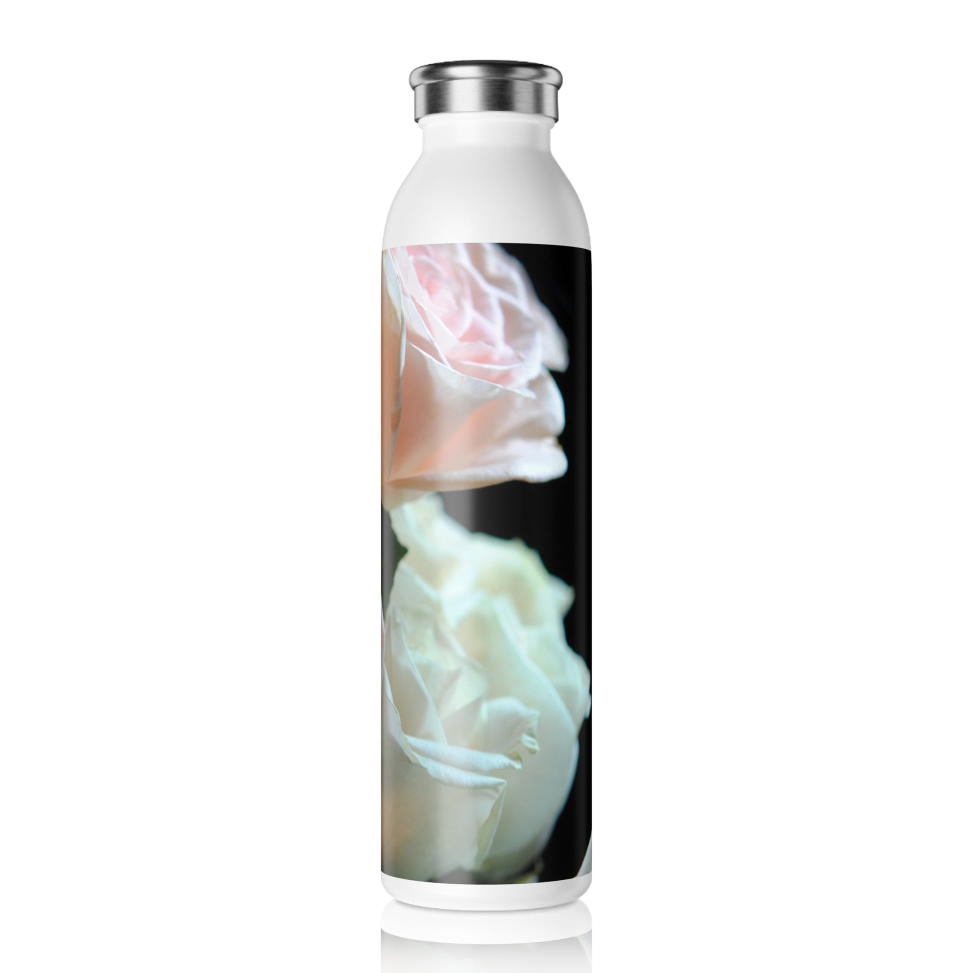 Pink and White Roses Bouquet Slim Water Bottle - Elegant Rose Design for Hydration on the Go