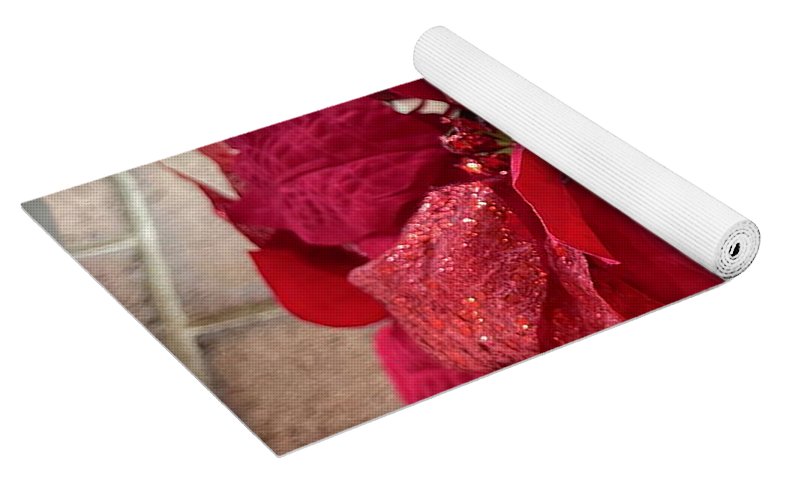 Our premium yoga mats are 24" wide x 72" tall x 0.25" thick and made from natural rubber with a blended microfiber top surface. The top of the mat has the image printed on it, and the back is solid black with textured dimples for better floor grip.