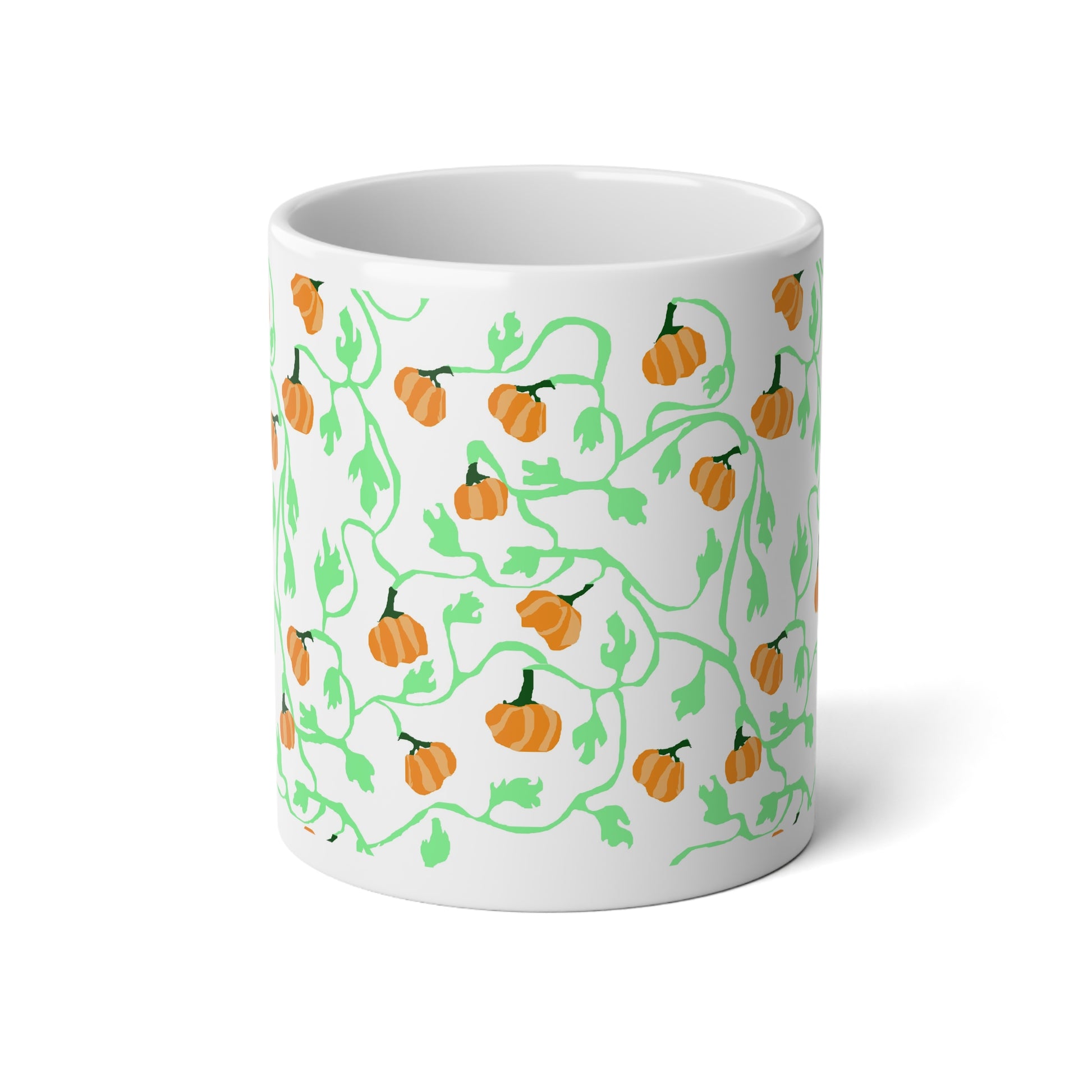 Pumpkin and Vines Pattern Jumbo Mug, Cozy Fall Drinkware, Seasonal Coffee Cup, Halloween Decor, Gift for Pumpkin Lovers