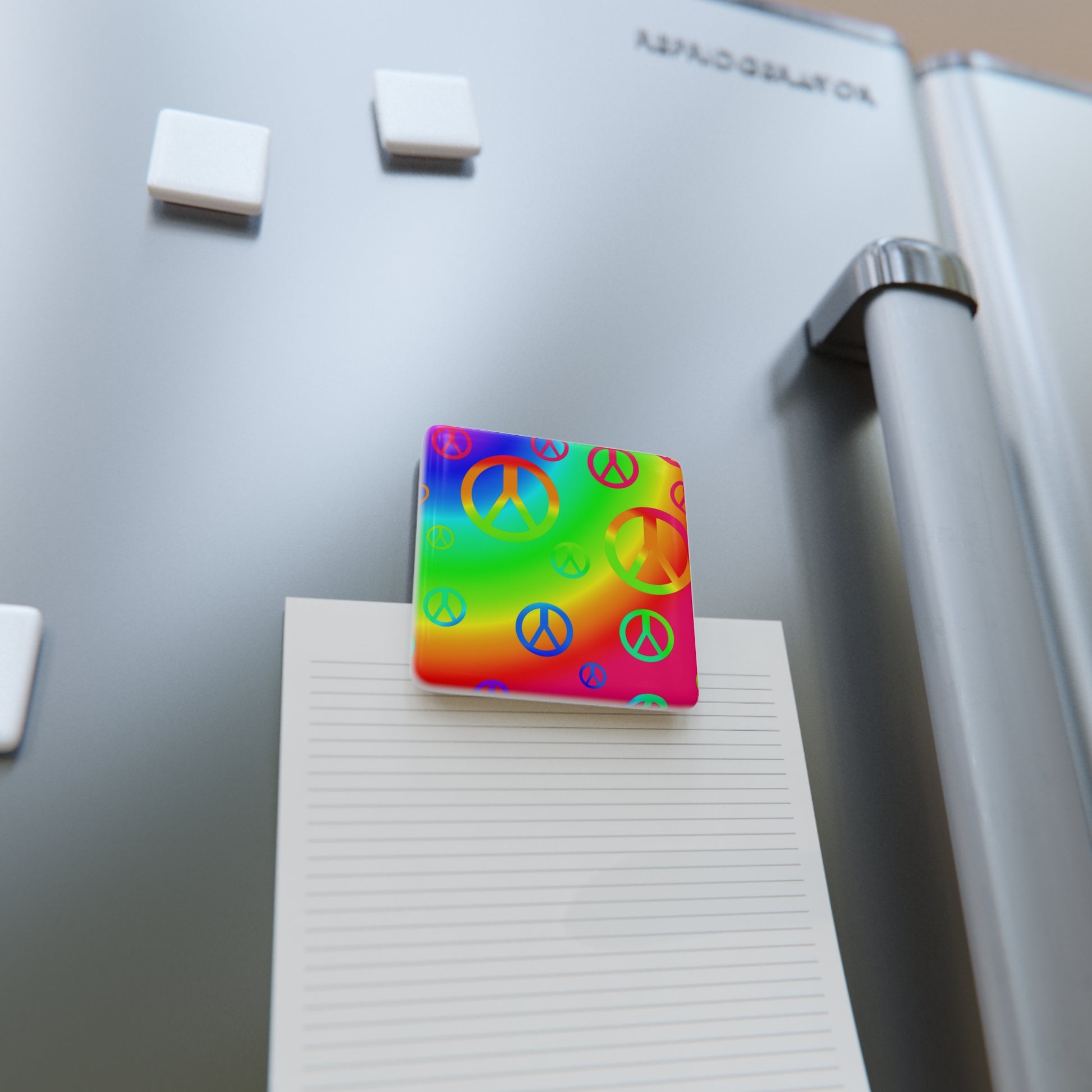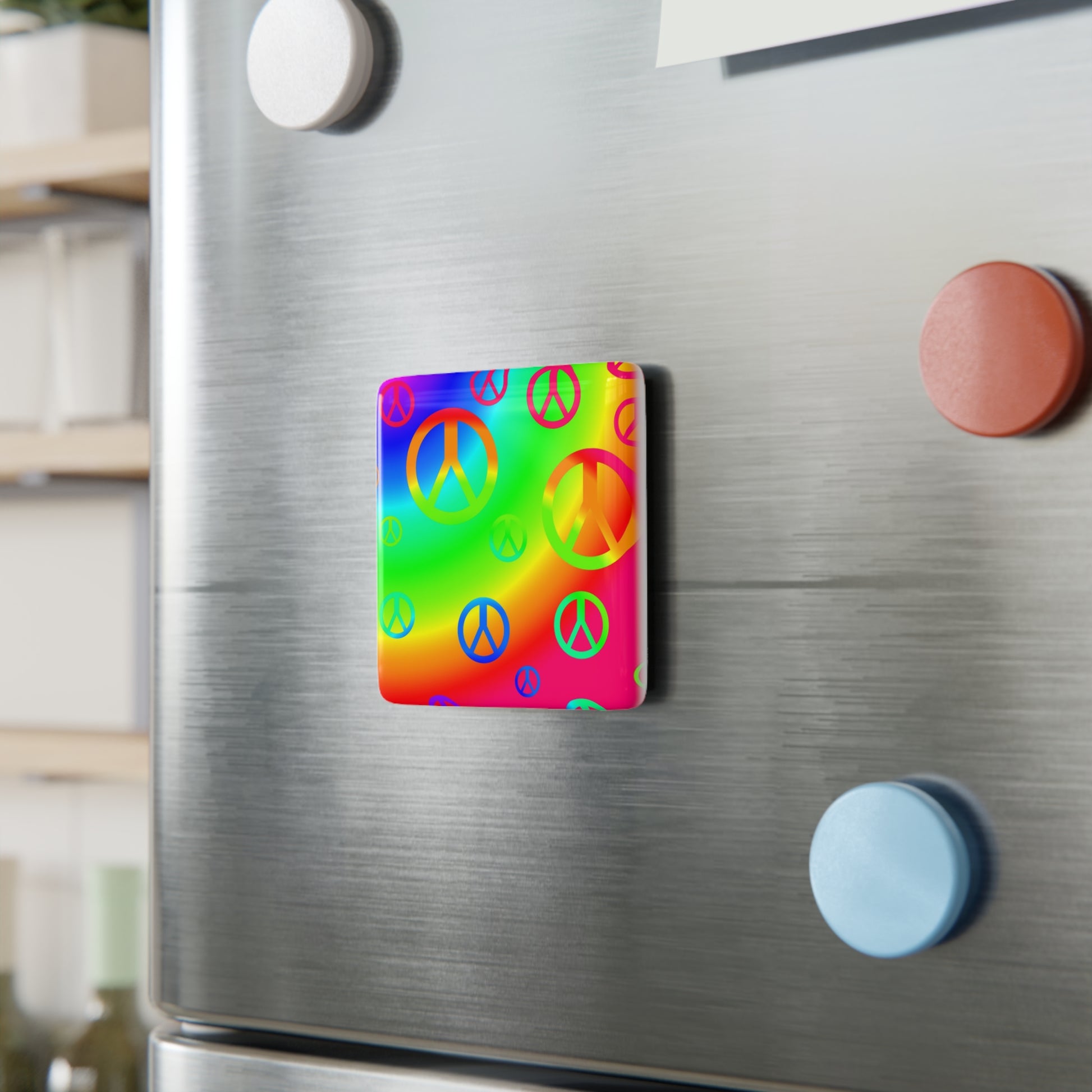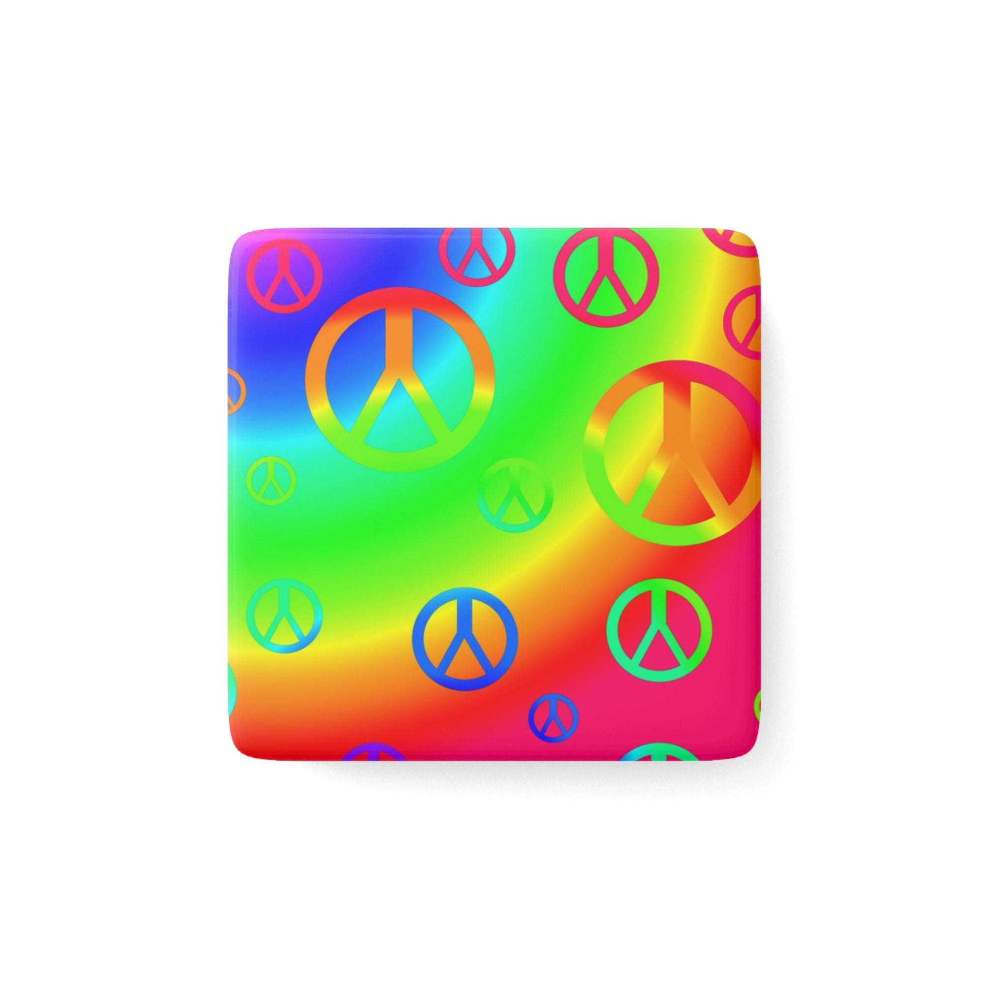 Rainbow Peace Signs Porcelain Magnet, Square