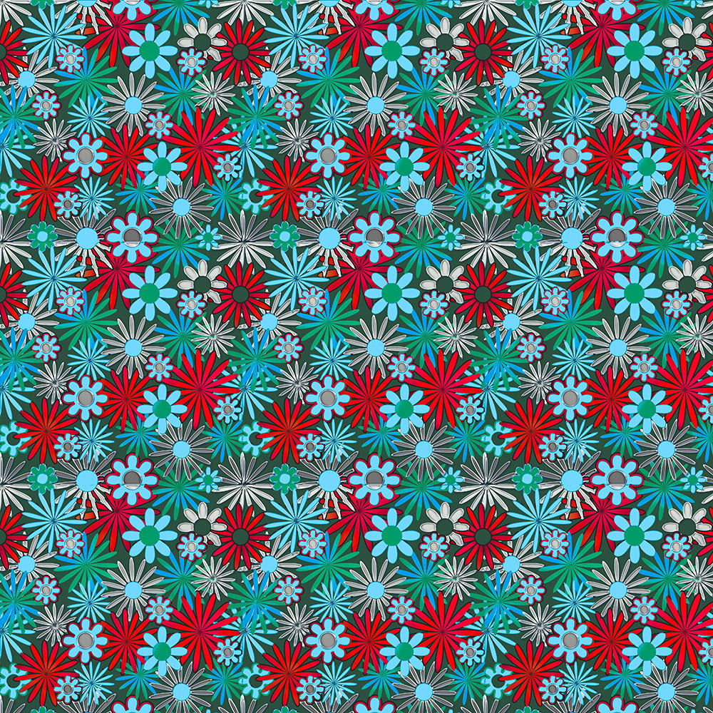 Red and blue daisies pattern.