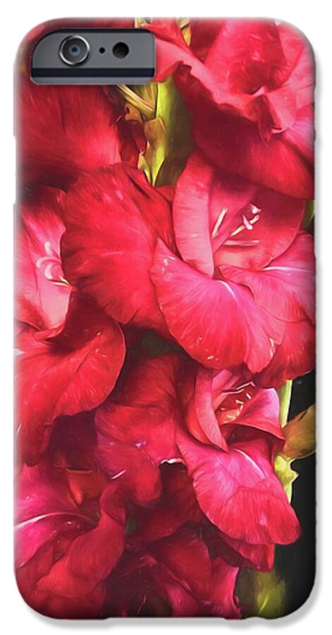Red Gladiolas on Black iPhone case by Cindy Boyd. Protect your iPhone with an impact-resistant, slim-profile, hard-shell case. The image is printed directly onto the case and wrapped around the edges for a beautiful presentation. Simply snap the case onto your iPhone for instant protection and direct access to all of the phone's features!