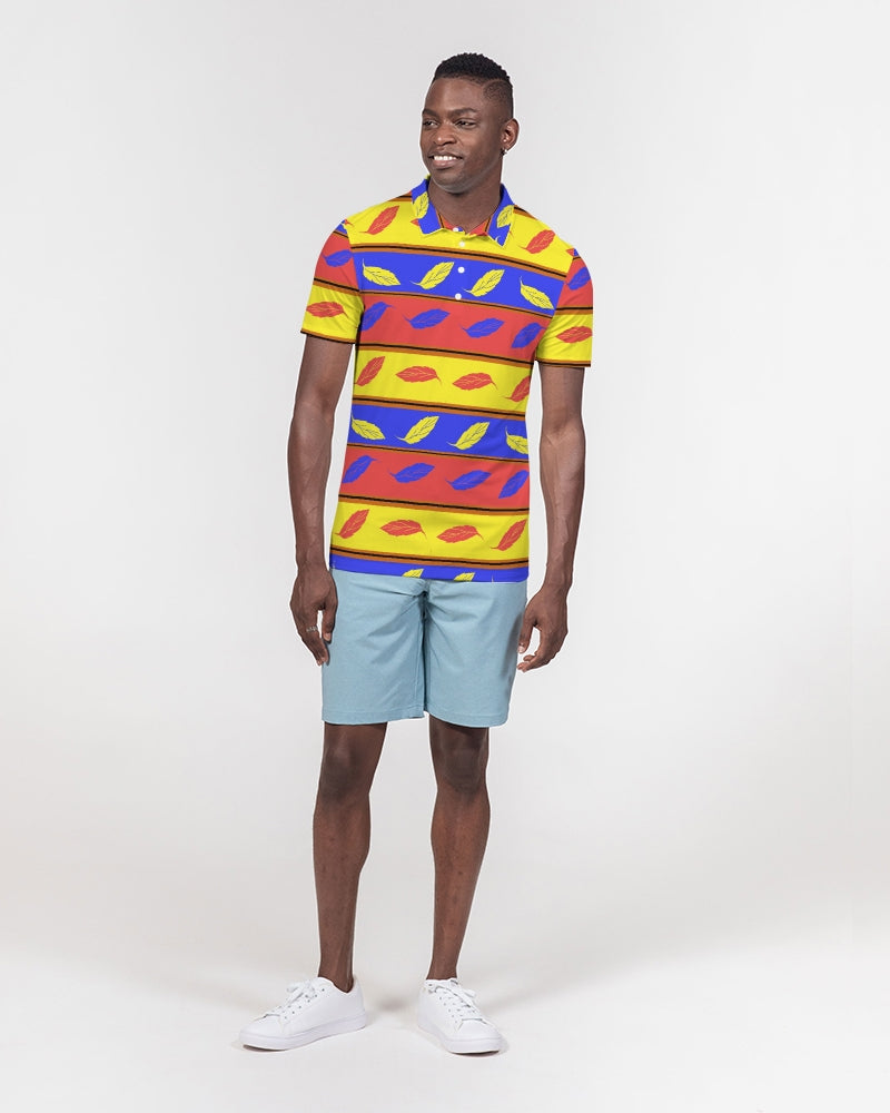 Red Yellow and Blue Leaf Stripes Men's Slim Fit Short Sleeve Polo