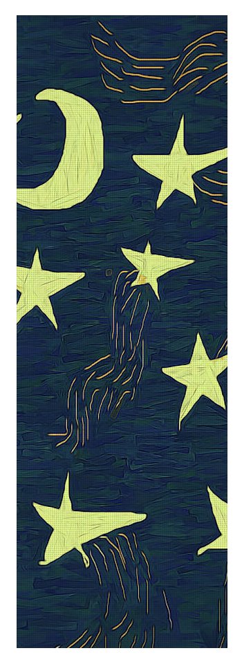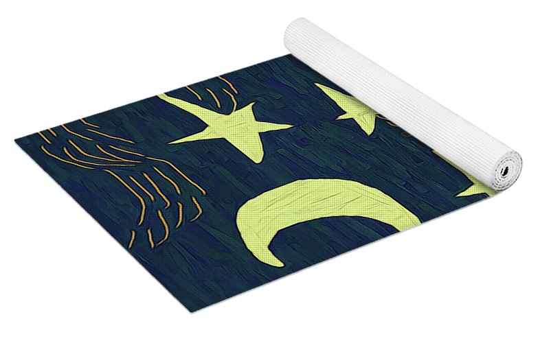Our premium yoga mats are 24" wide x 72" tall x 0.25" thick and made from natural rubber with a blended microfiber top surface. The top of the mat has the image printed on it, and the back is solid black with textured dimples for better floor grip.