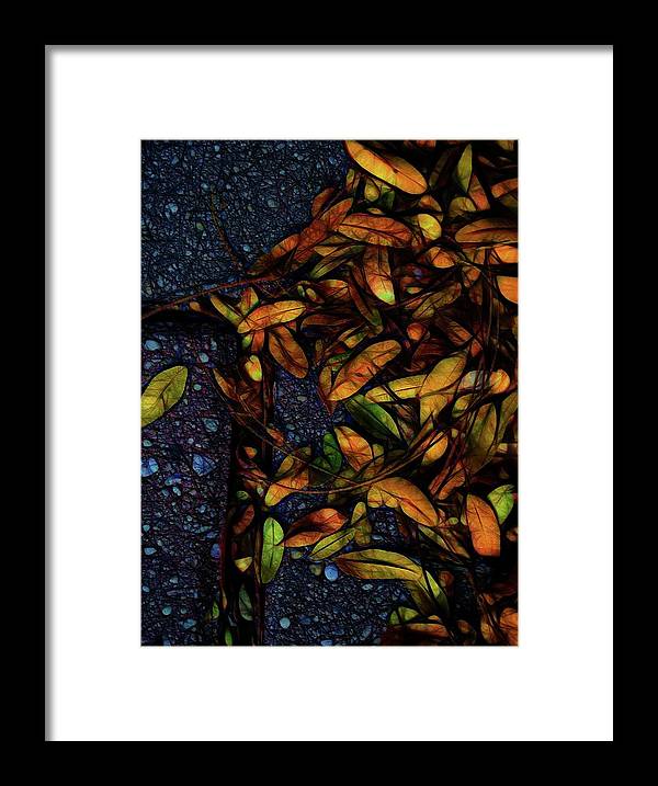 Sidewalk Leaves in Brick - Framed Print