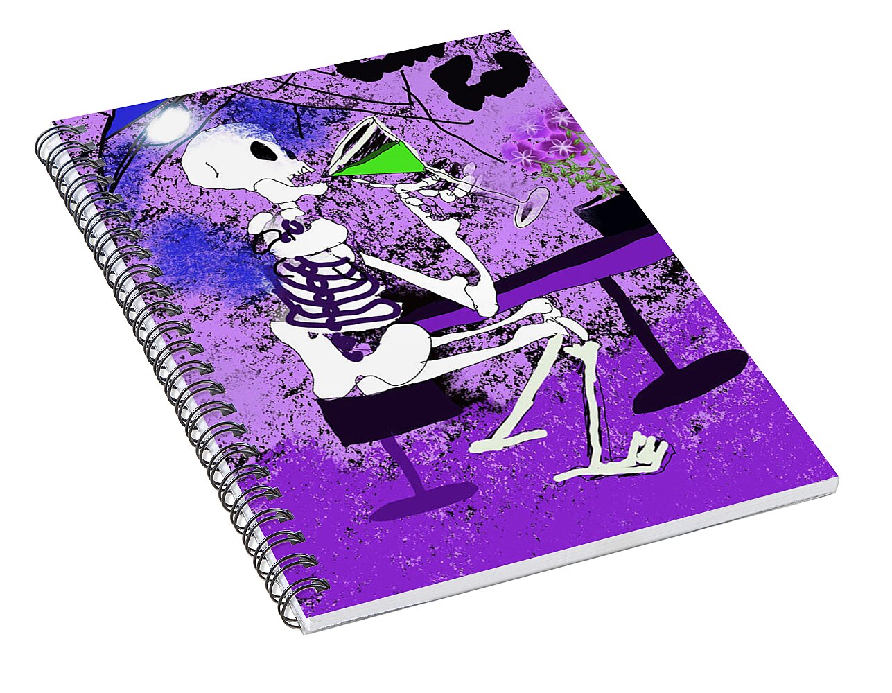 Our spiral notebooks are 6" x 8" in size and include 120 pages which are lined on both sides. The artwork is printed on the front cover which is made of thick paper stock, and the back cover is medium gray in color. The inside of the back cover includes a pocket for storing extra paper and pens.