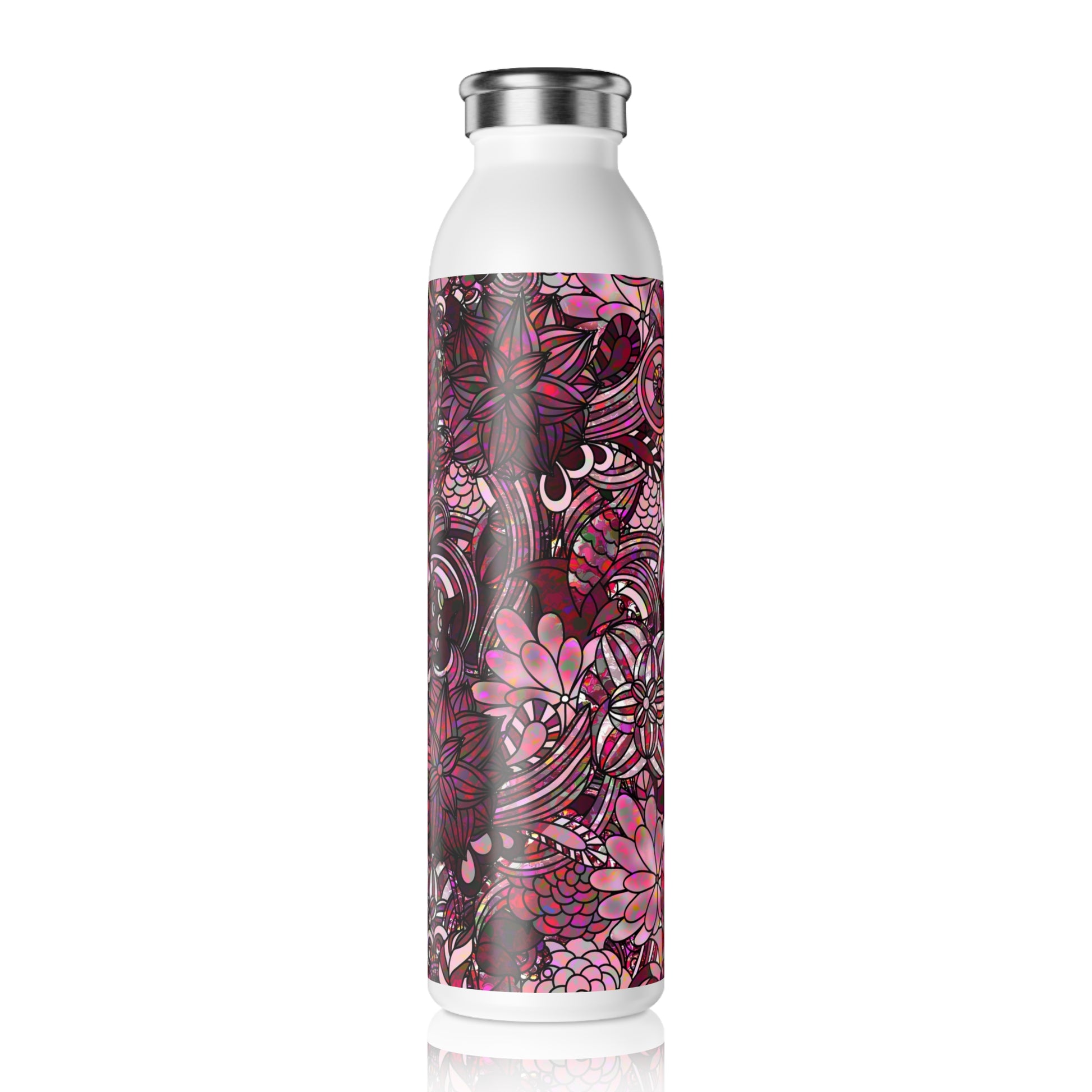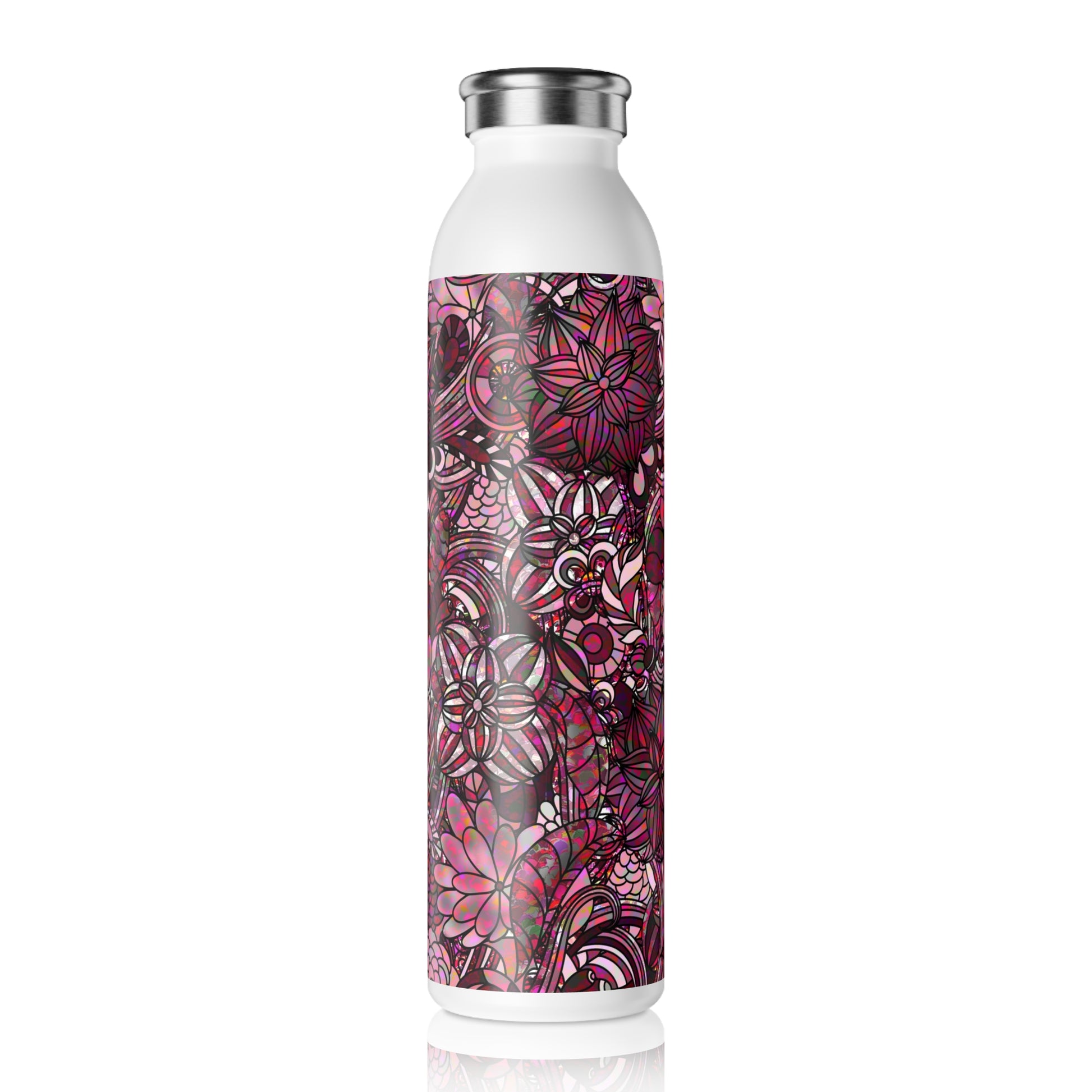 Slim Water Bottle — Pink Floral Paisley Pattern Insulated Stainless Steel Bottle