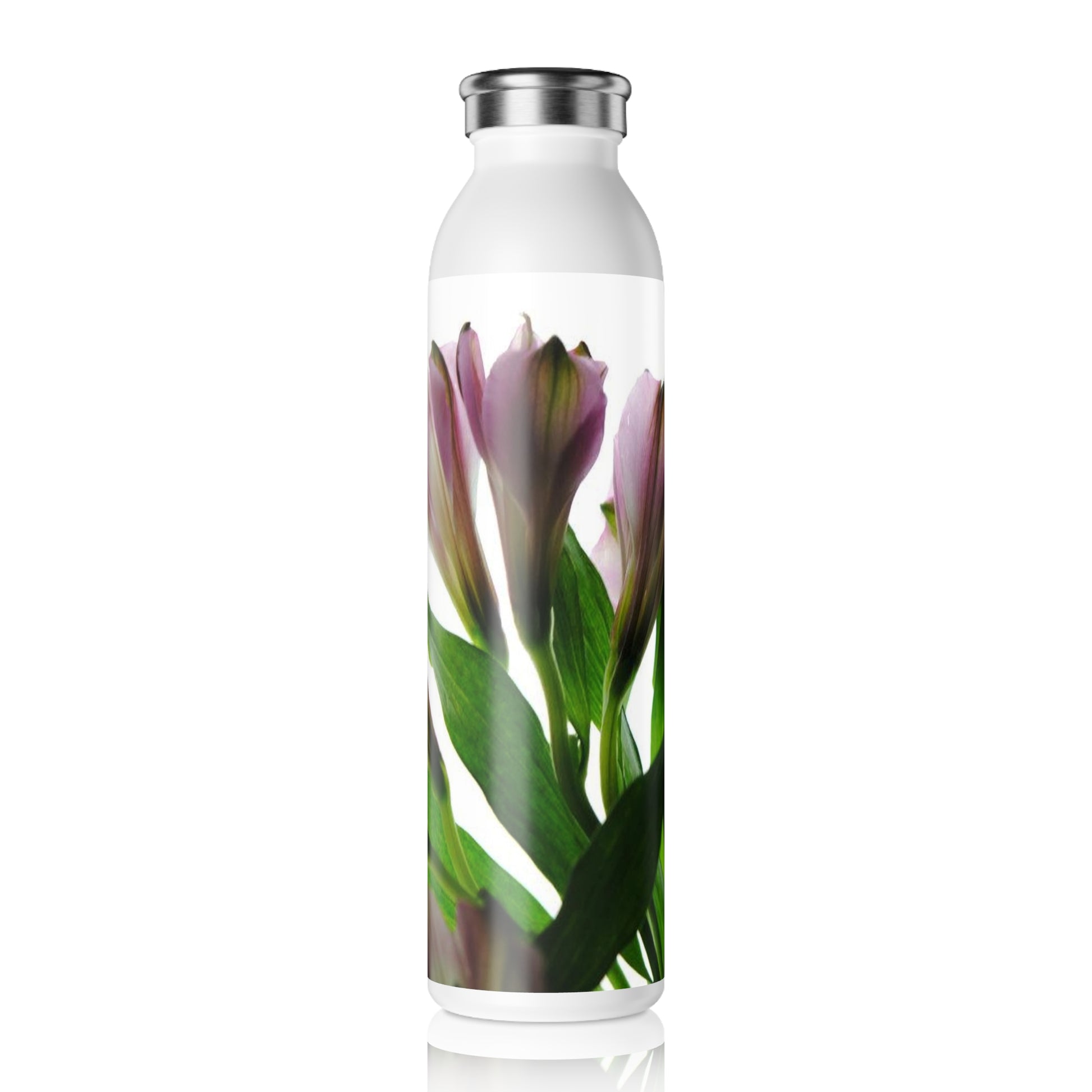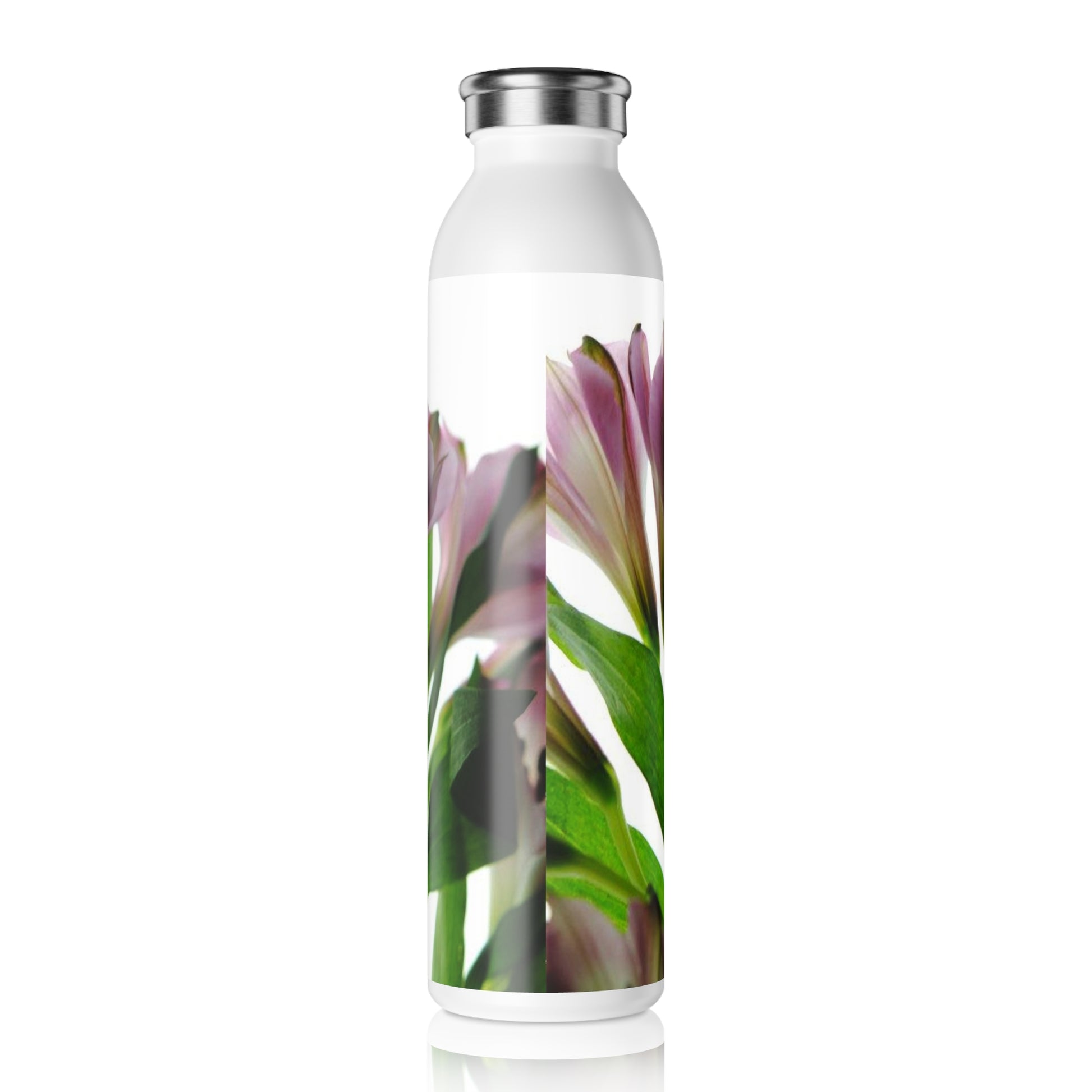 Slim Water Bottle — Pink Flowers Green Stems Stainless Steel Bottle