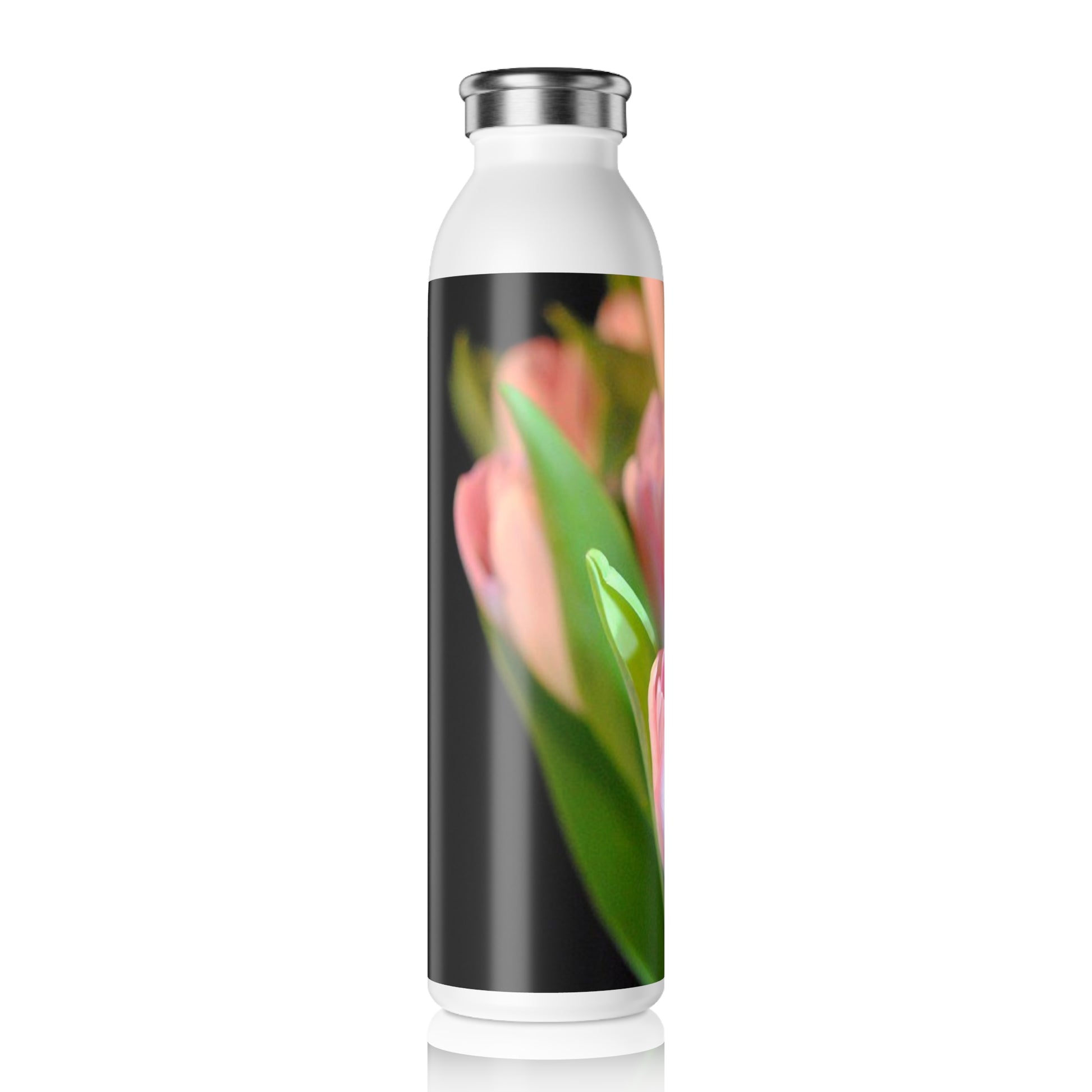 Slim Water Bottle — Pink Tulip Floral Stainless Steel Bottle, Spring Garden Drinkware