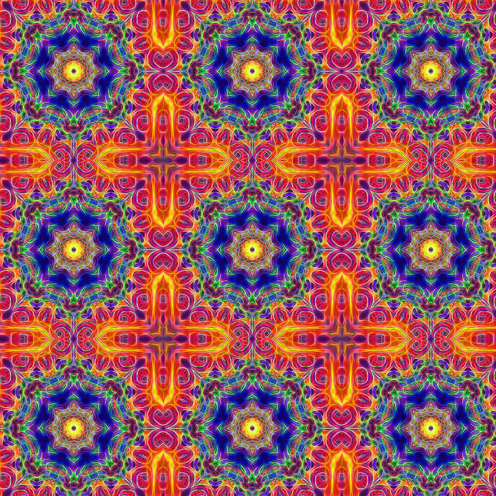 Kaleidoscope in colors of the sunrise in repeated pattern.