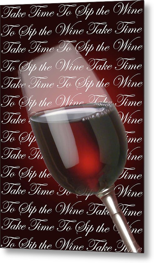 Take Time To Sip The Wine metal print by Cindy Boyd. Bring your artwork to life with the stylish lines and added depth of a metal print. Your image gets printed directly onto a sheet of 1/16" thick aluminum. The aluminum sheet is offset from the wall by a 3/4" thick wooden frame which is attached to the back. The high gloss of the aluminum sheet complements the rich colors of any image to produce stunning results.