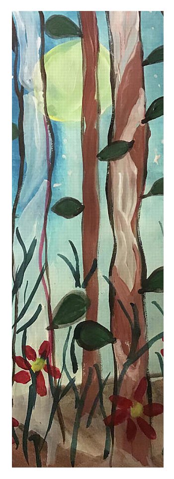 Our premium yoga mats are 24" wide x 72" tall x 0.25" thick and made from natural rubber with a blended microfiber top surface. The top of the mat has the image printed on it, and the back is solid black with textured dimples for better floor grip.