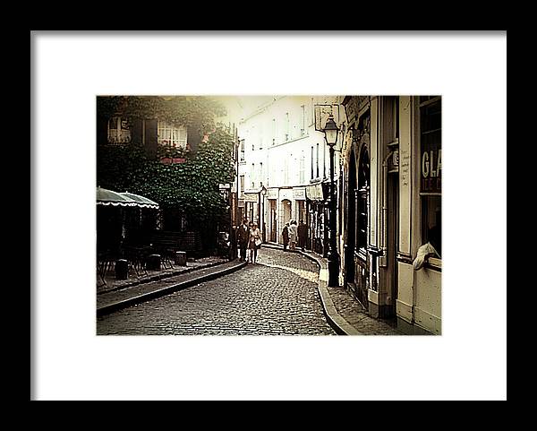 Vintage Travel Cobblestone Cafe - Framed Print