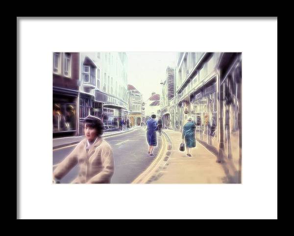 Vintage Travel Street With Bicycle Rider - Framed Print