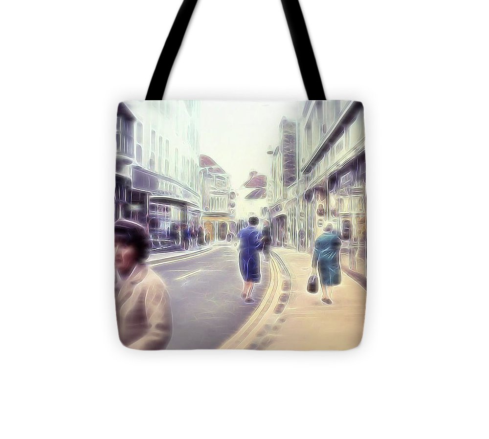 Vintage Travel Street With Bicycle Rider - Tote Bag