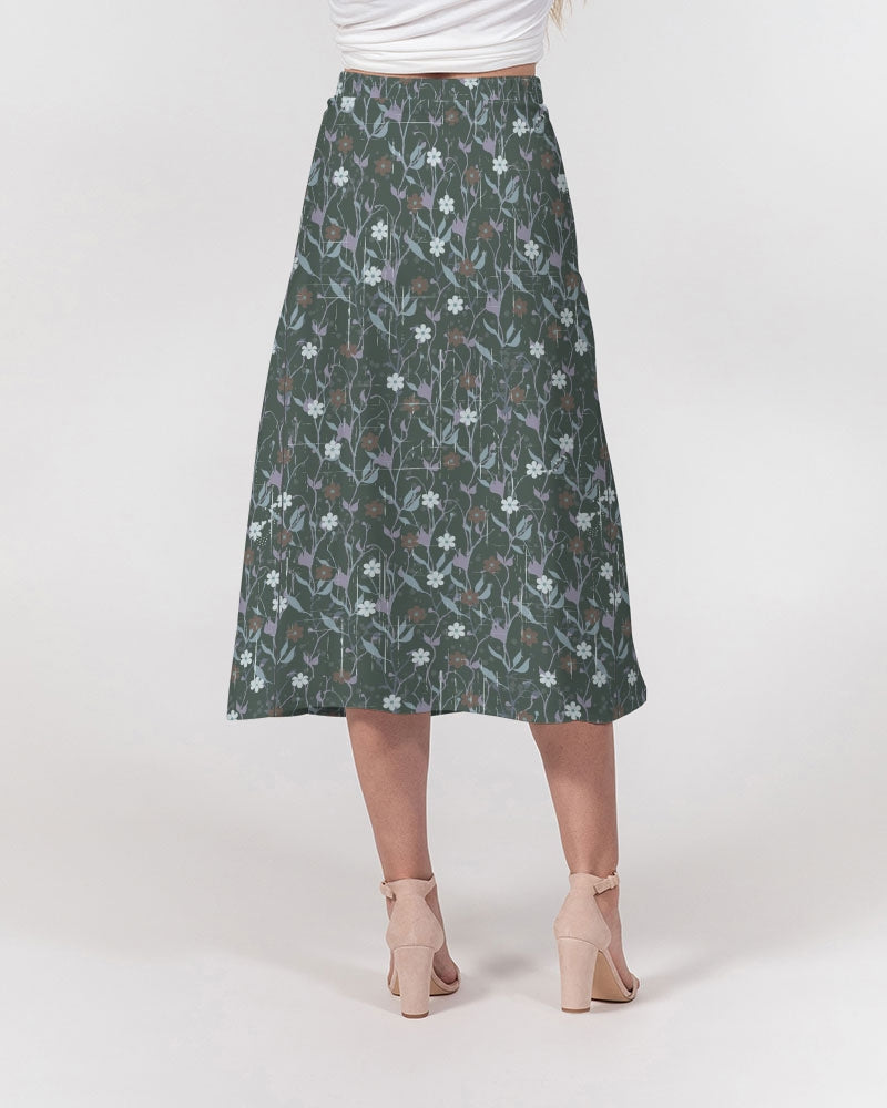 Violets On Gray Women's A-Line Midi Skirt