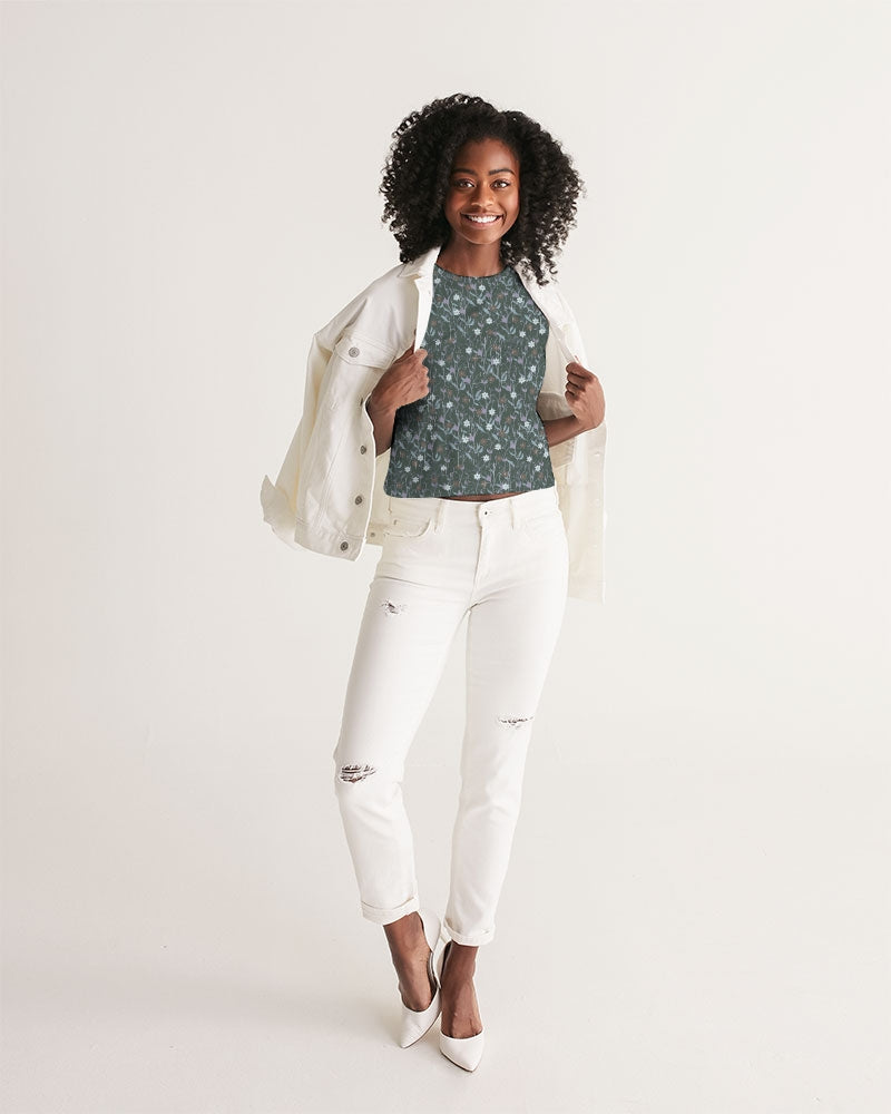 About The ArtViolets On Gray Violet wildflowers on gray background. Product DetailsCrafted from soft fabric with a crew neckline and straight hem, our Women's Cropped Tank provides maximum comfort and a style that never fades.