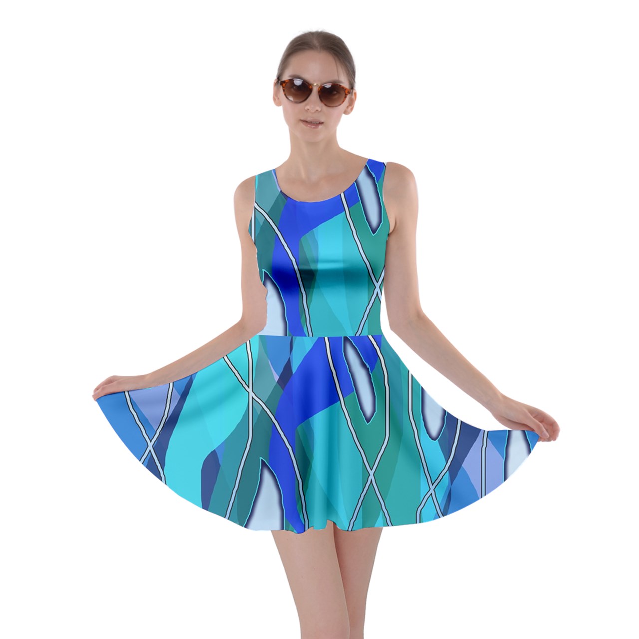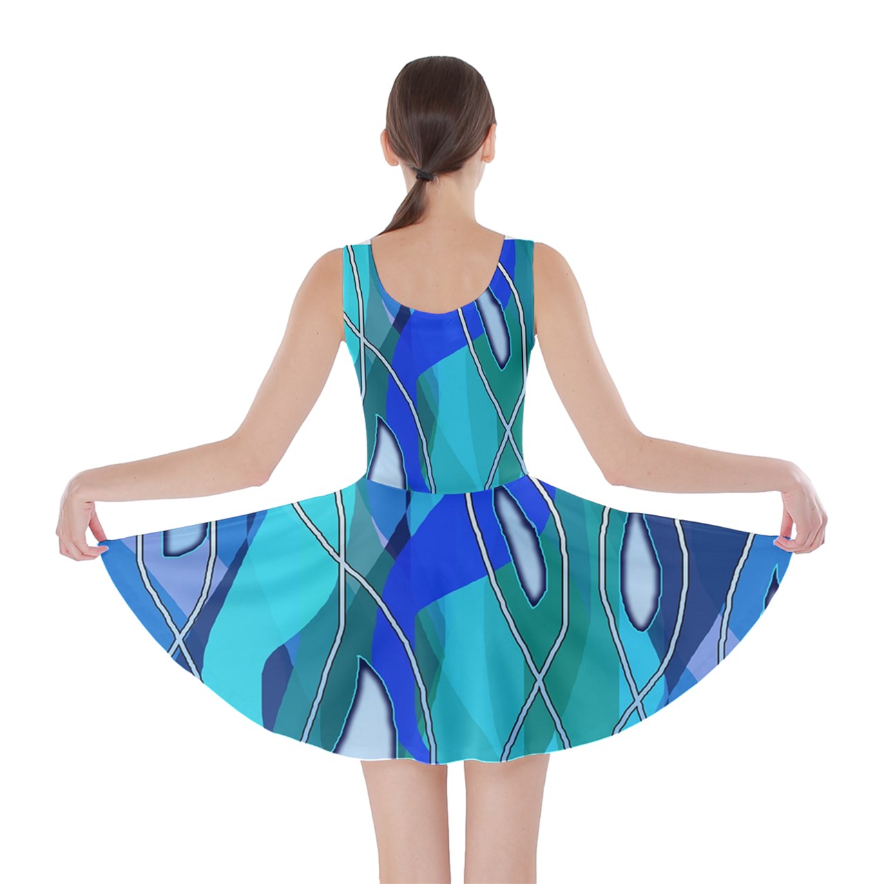 Wavy Blue Skater Dress