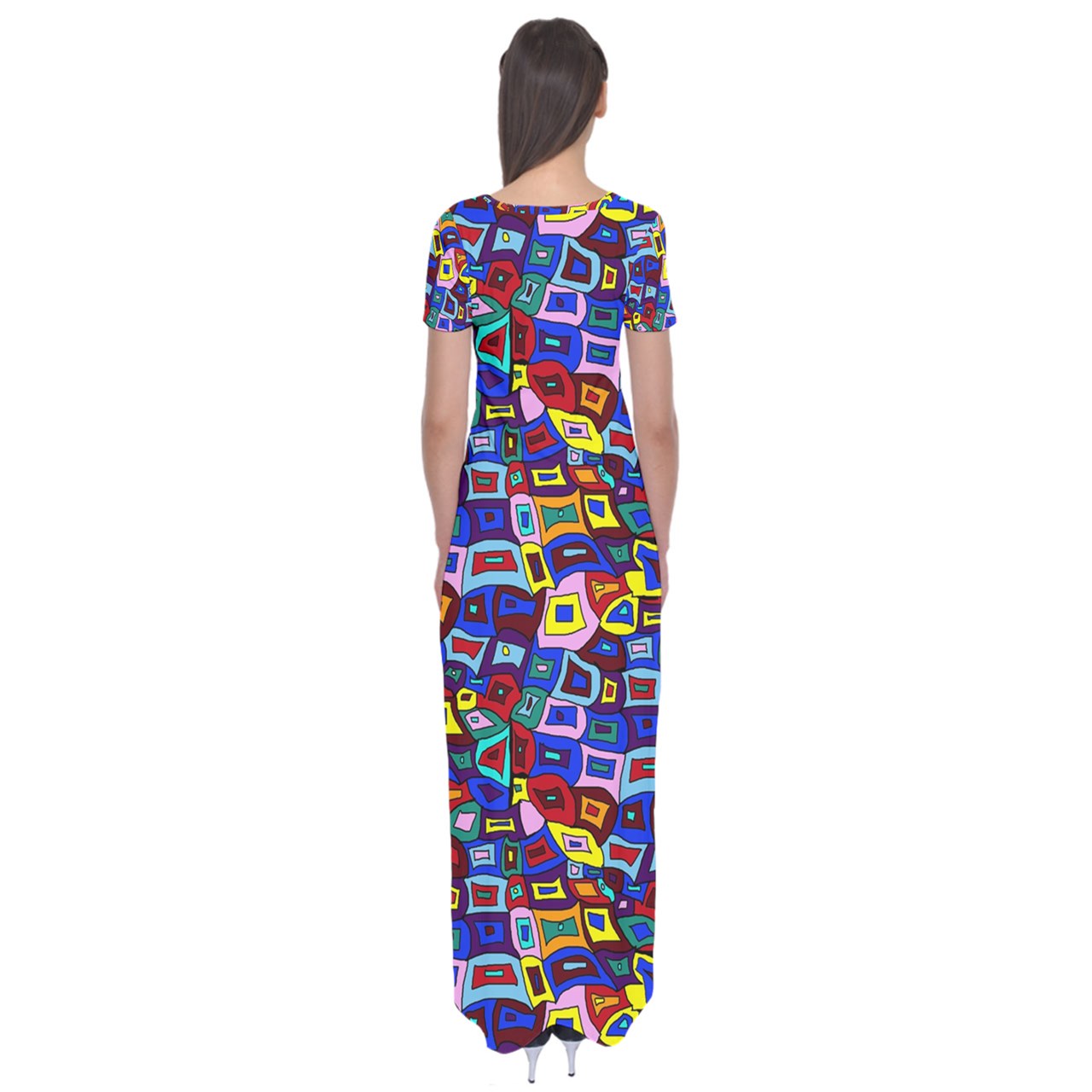 Wavy Square Pattern Short Sleeve Maxi Dress